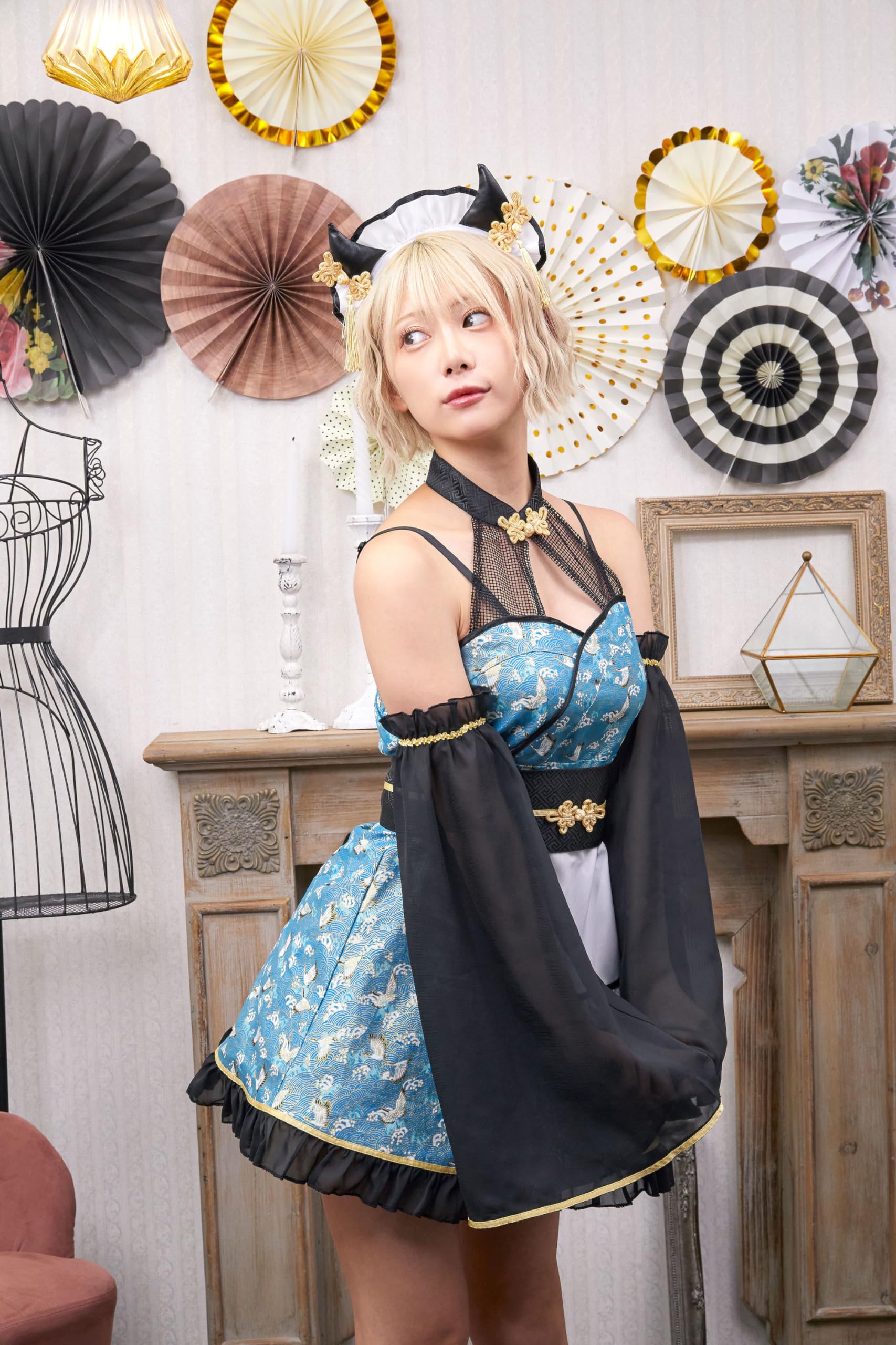 和鬼×メイドの組み合わせと和柄生地が和洋折衷のコンビネーション。