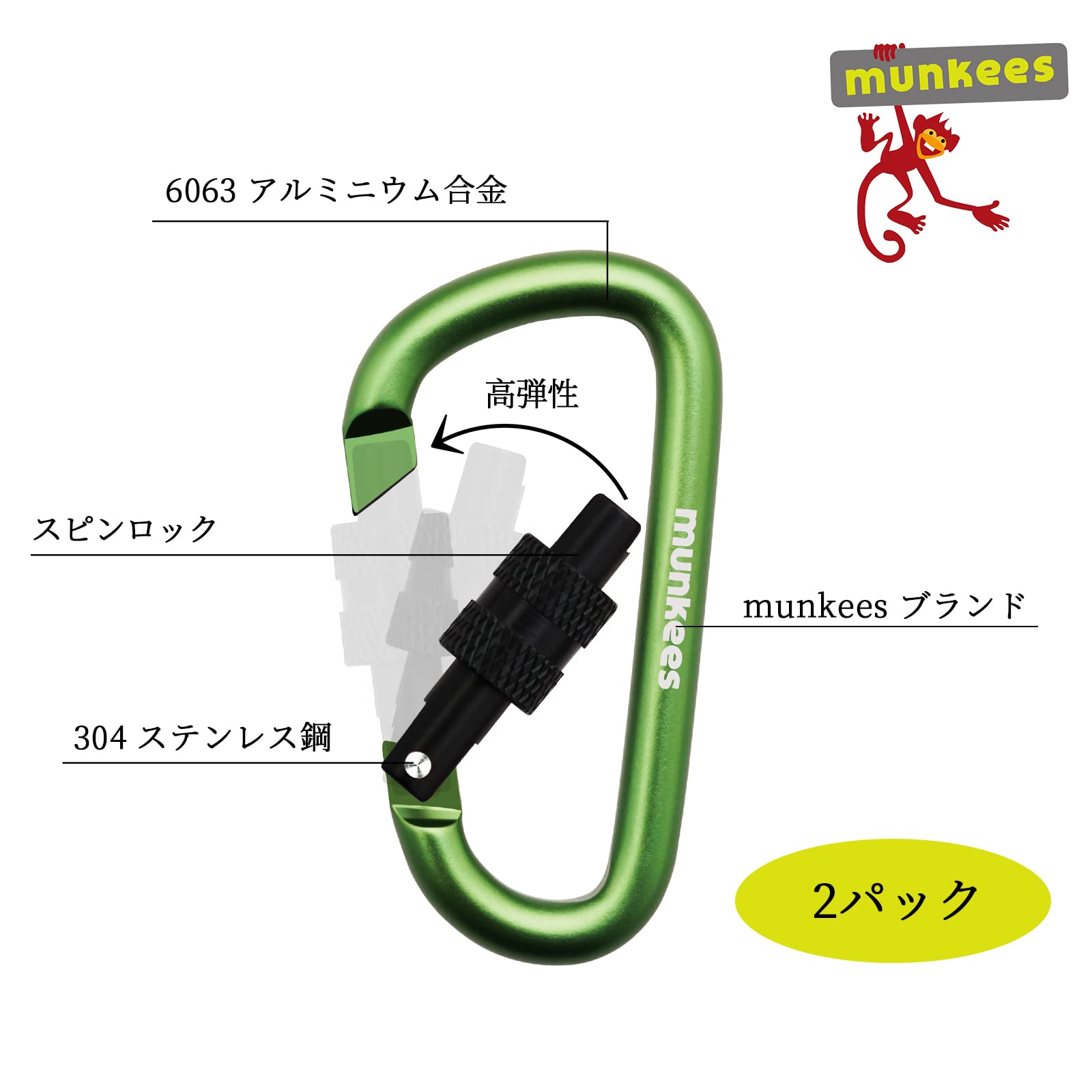 [MUNKEES] ロック付きD字型カラビナ、キーホルダー、バックパックバックル、2個 小さい