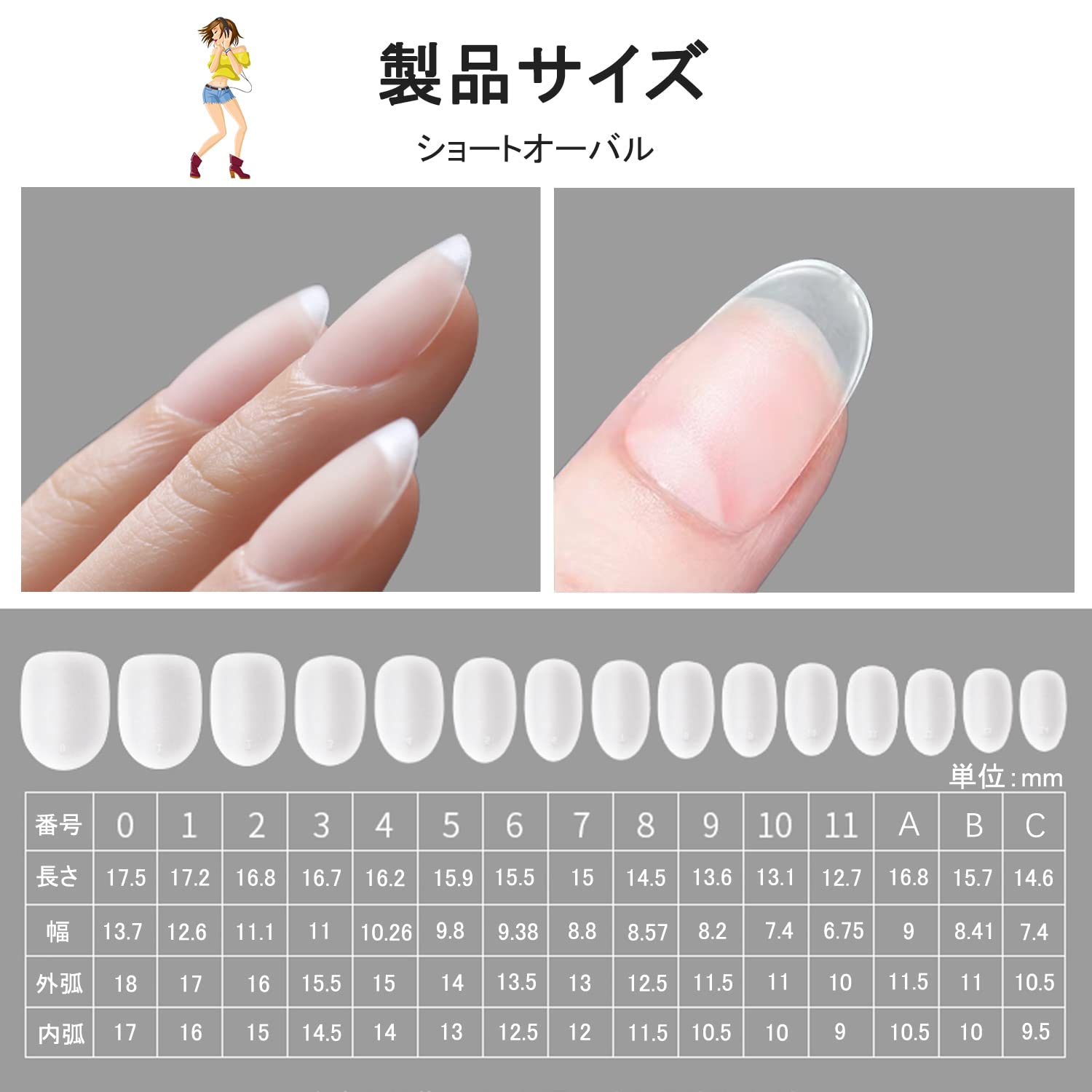 ネイルチップ ショートオーバル サンディング済みネイルチップ 300枚セット 15サイズ ショート フルカバー プレーンチップ クリアチップ 練習用 業務用 セルフジェルネイル