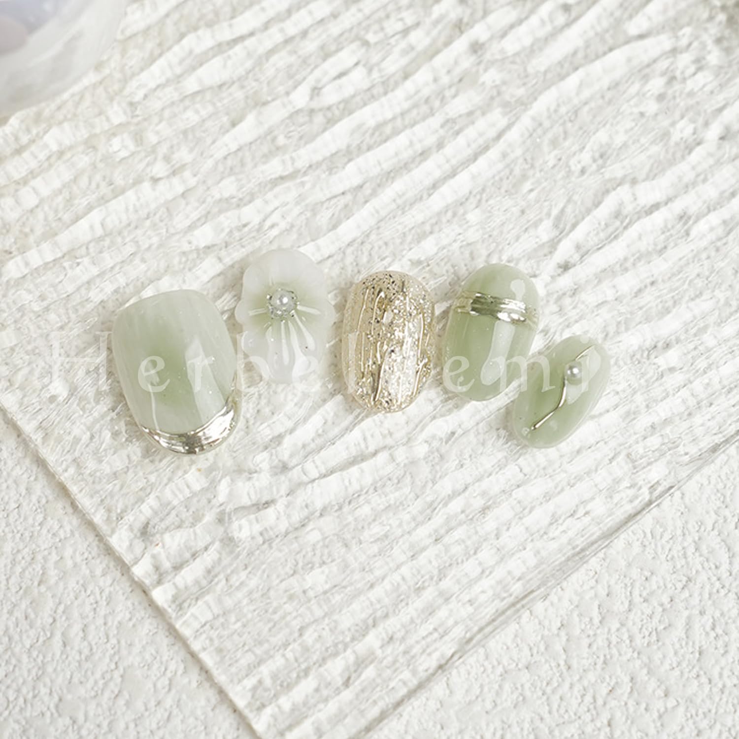 [Herbeluemily] ネイルチップ ショート 手作り 付け爪 3D 収納ケース 10枚入 フラワー マーメイド フラワーグリーン(オーバル) L HM-0098-R18-OVGR-L