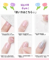 1.内容:ネイルチップ24枚+付替え用両面テープ+取り外し用ウッドスティック1個+爪やすり1個。