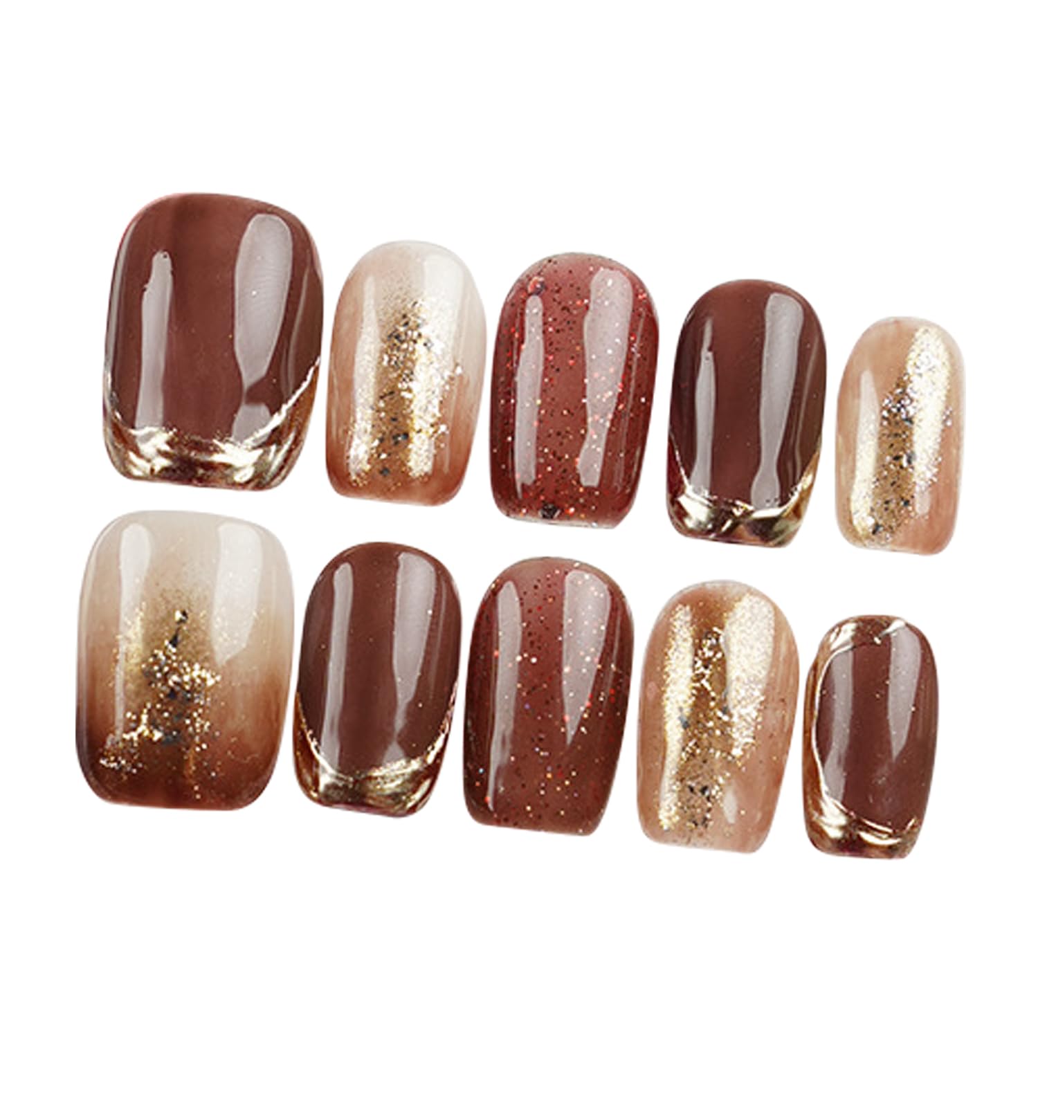 【ブラウン味がかったレッド×ゴールドのネイル】艶がきれいなバーガンディ系レッドを基調に、ゴールドのラメとフレンチネイルが、より高級感のあるネイルチップ。指先に華やかさを加えてくれる和装にも似合う人気のデザインです。また、ポイントのミラーネイル調デザインでトレンドを簡単に取り入れられます♪