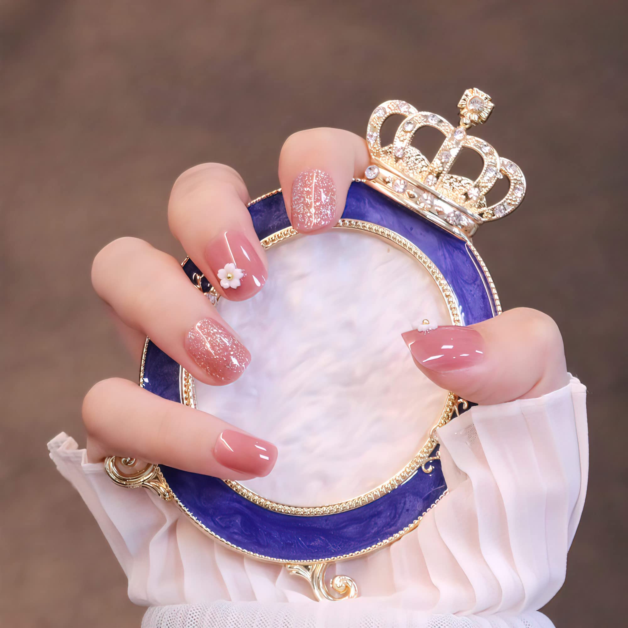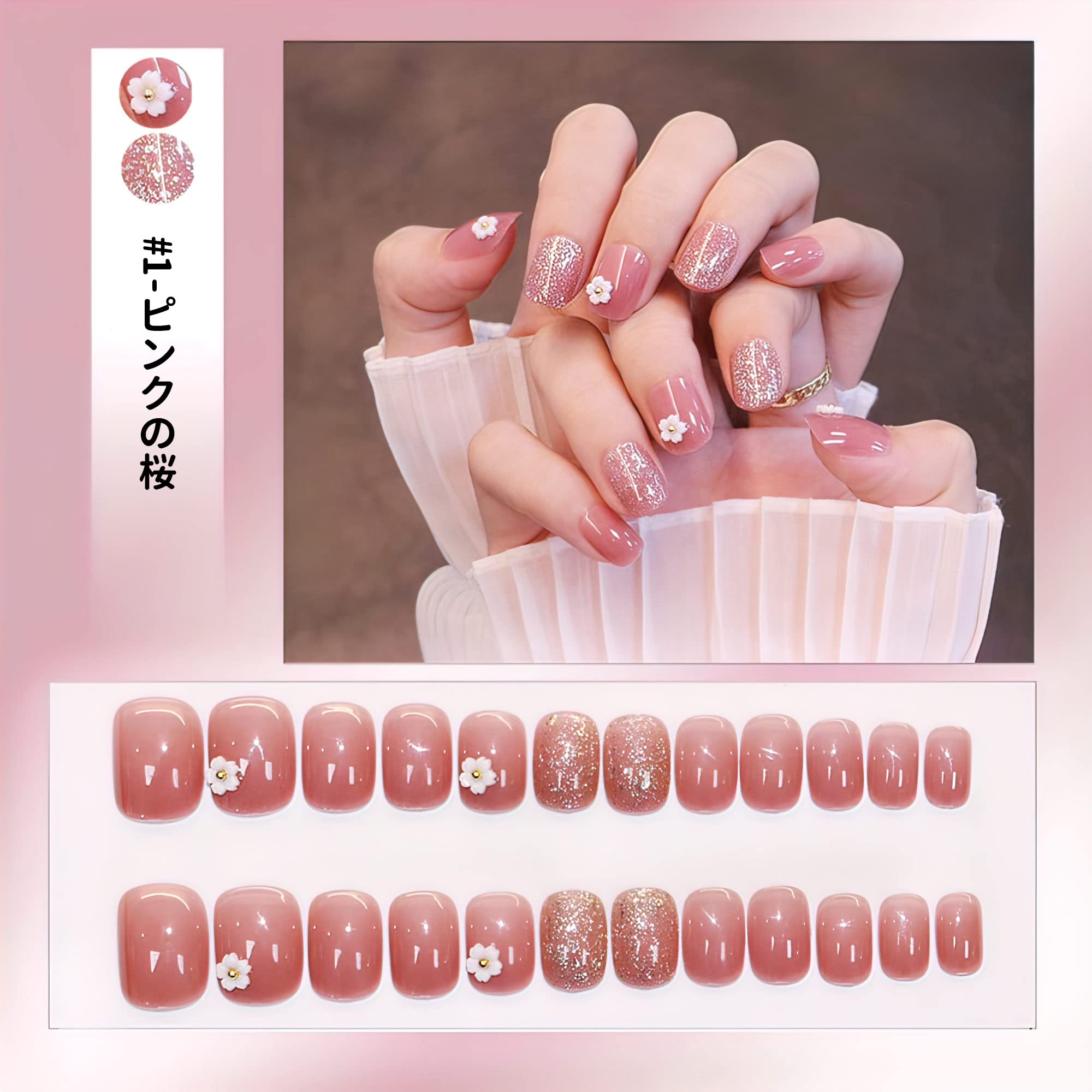 Sun&Beam ネイルチップ ベリーショート 人気 3D爪 つけ爪 かわいい 短め ラウンドチップ ファッション ネイル 付け爪 24枚入 (#1-ピンクの桜)