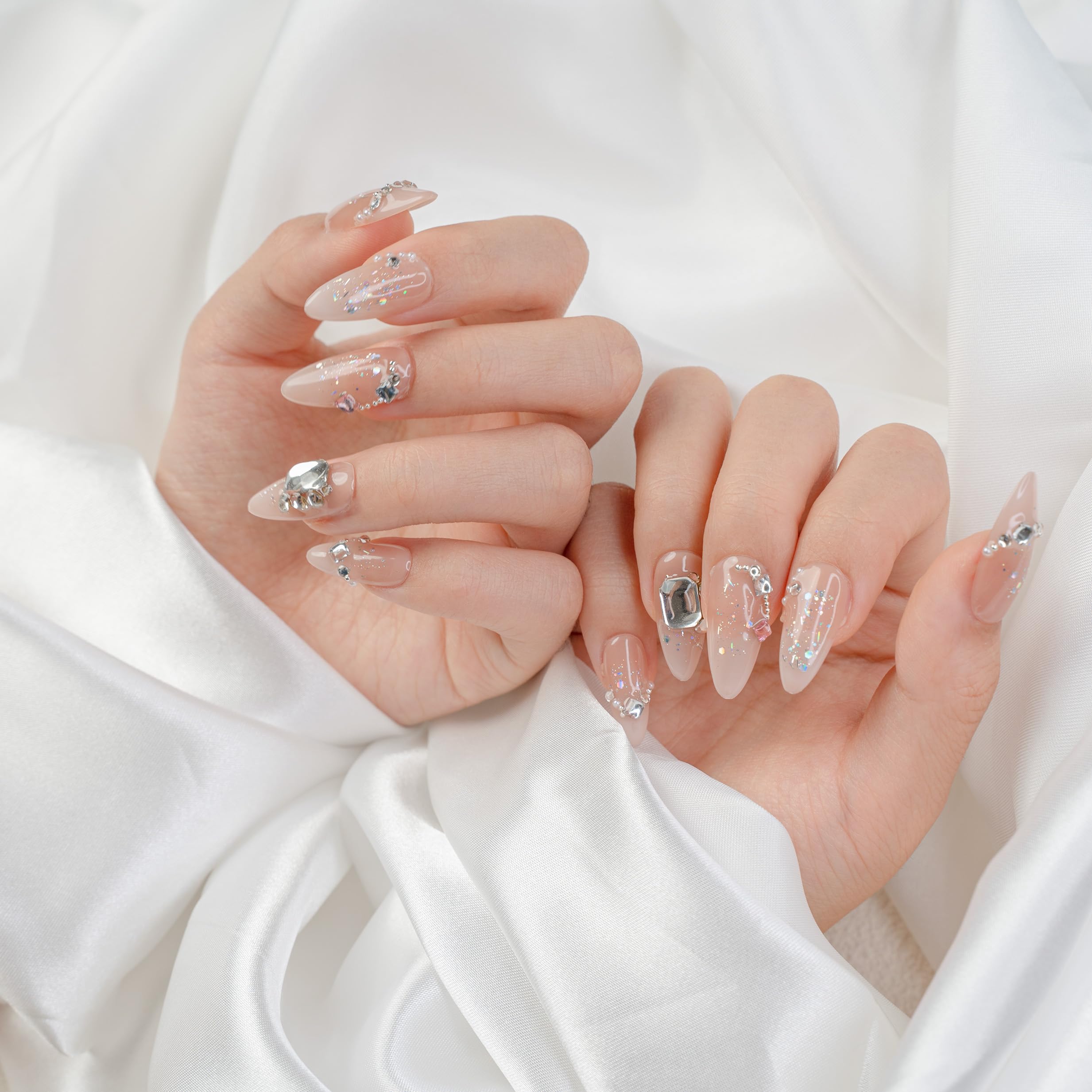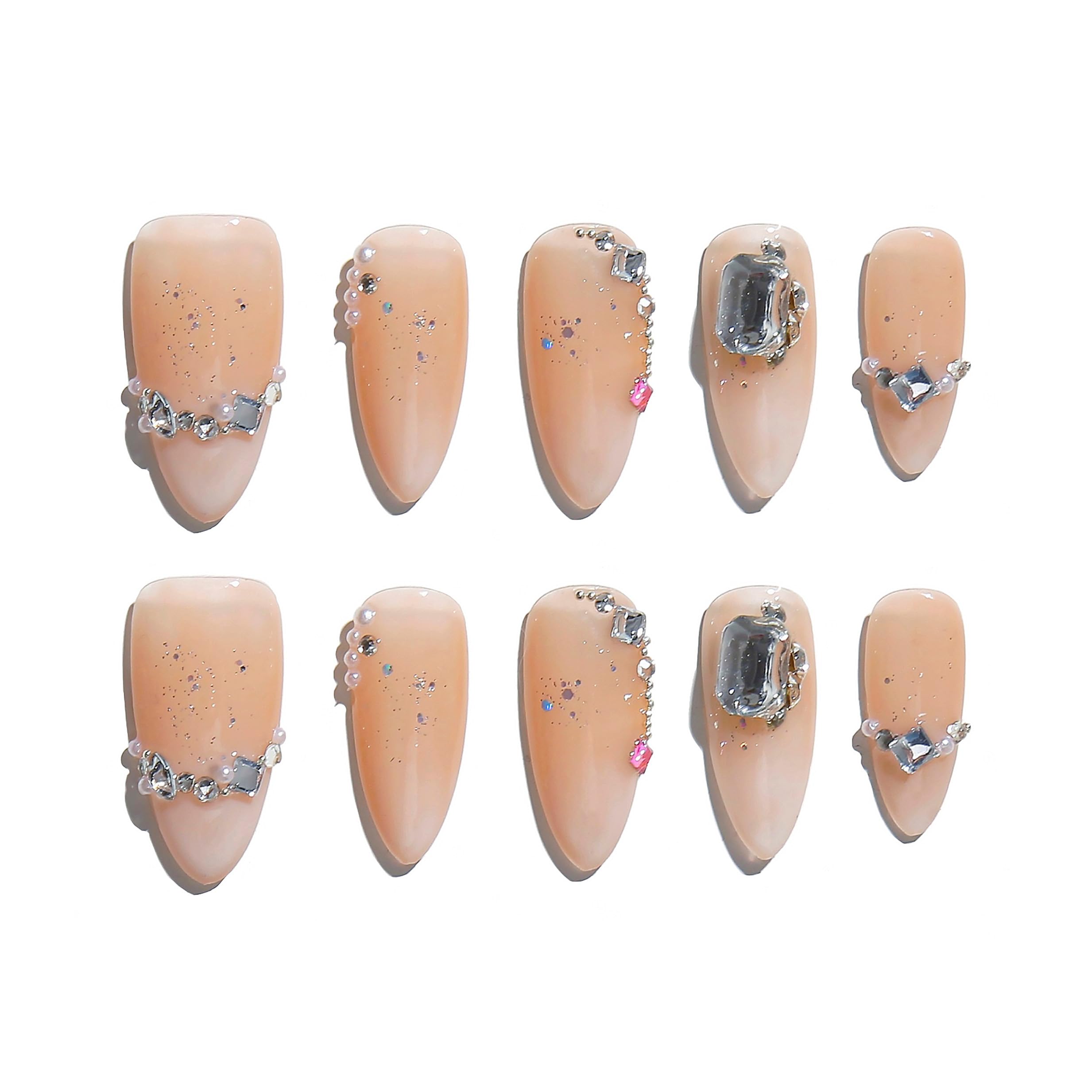 Sun&Beam Nails 手作り ネイルチップ ミディアム ロング オーバル 肌色 つけ爪 グリッター キラキラ おしゃれ デザイン 付け爪 10枚入 (#176 L)