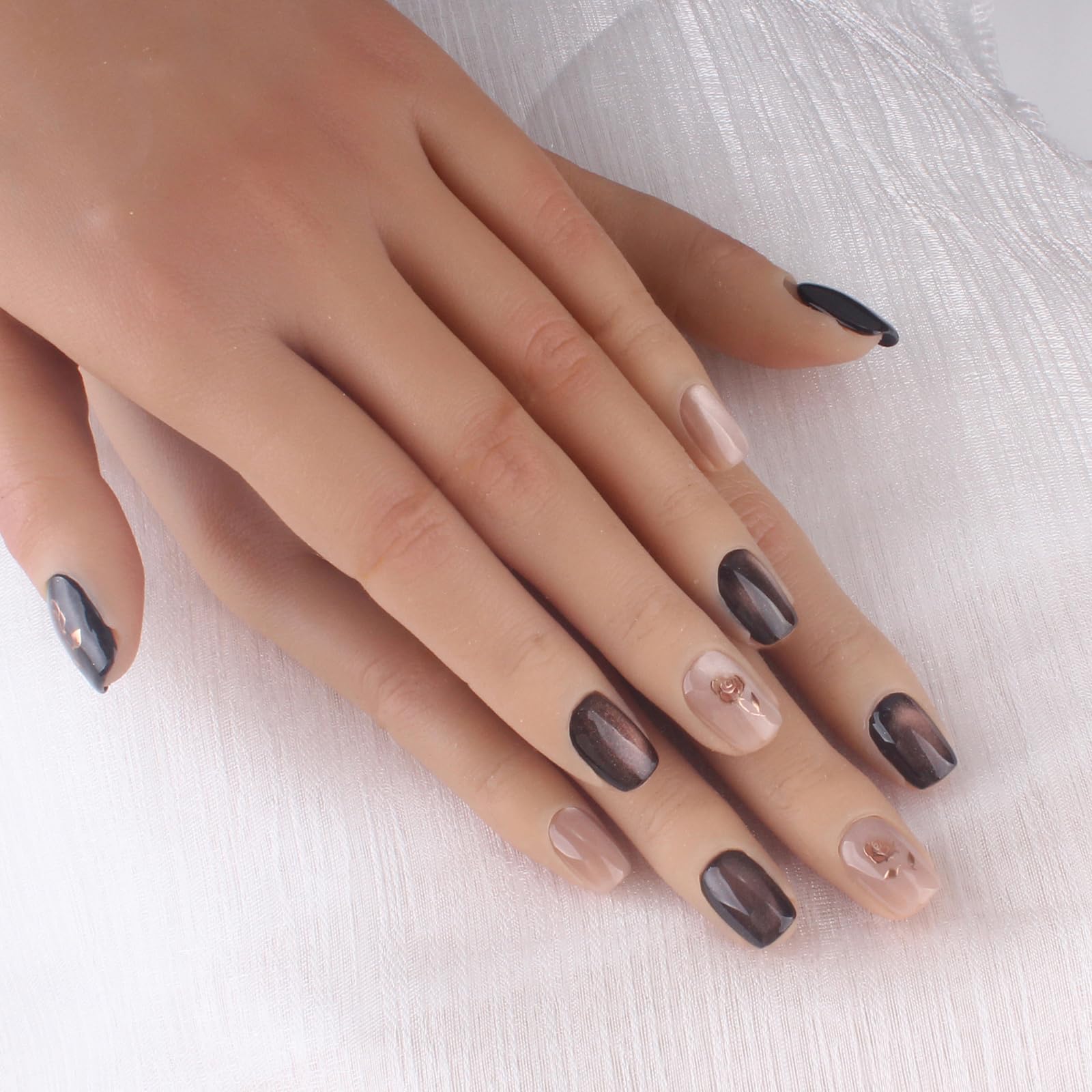 MZCMSL 手作り ネイルチップ ゴールド 花 人繰り返し使える貼るだけ簡単便利 ネイリスト作成 ハンドメイド ネイルチップ 10枚入 (ゴールドのバラ・ピンク ・ M)