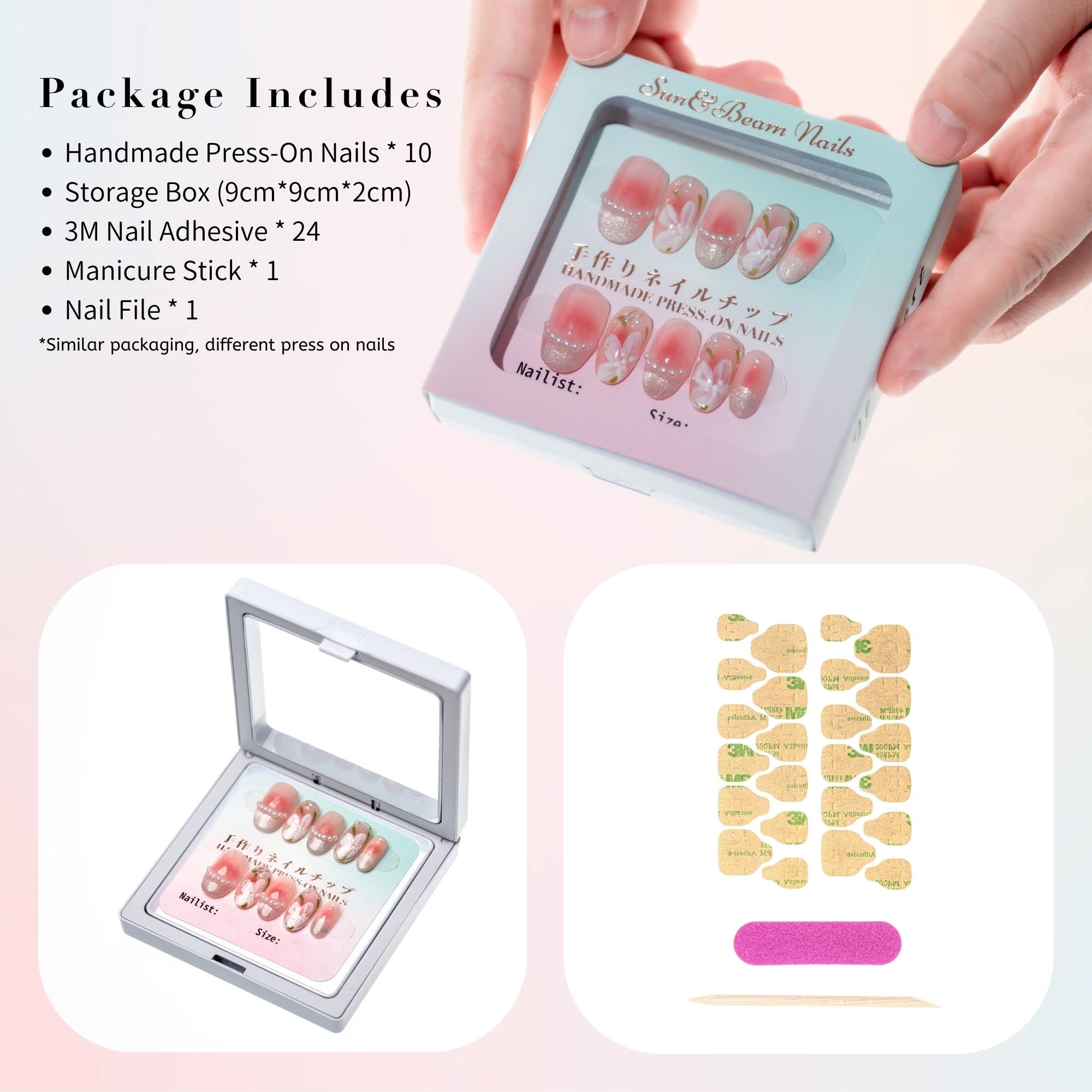 ??【なぜ手作りネイルチップを選ぶのか?】 ① 手作りネイルチップはより精巧です。 ②複数のサイズ選択肢を提供し、大人も子供も快適に使用できます ③ 高品質の原材料を使用すると、より耐久性があります。 ④ オフラインのネイルアートと同じ効果を、より短い時間とコストで実現します。 ⑤ 使用が簡単で、必要に応じて異なるスタイルのマニキュアを交換できます。