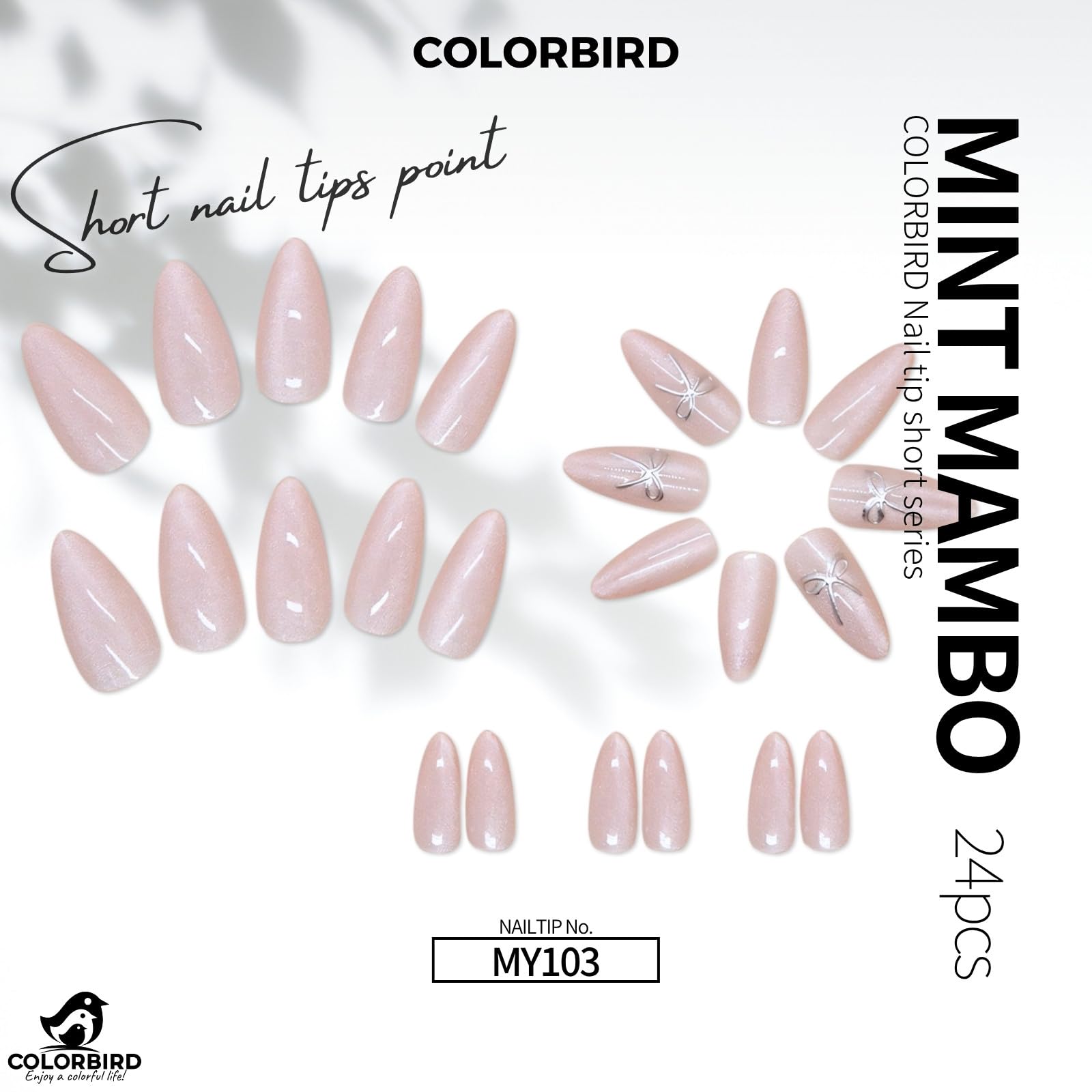 COLORBIRD ネイルチップ ショート 24枚 マグネットネイル ピンク ネイル 付け爪 チップ 短め 可愛い ポイント (MY103)