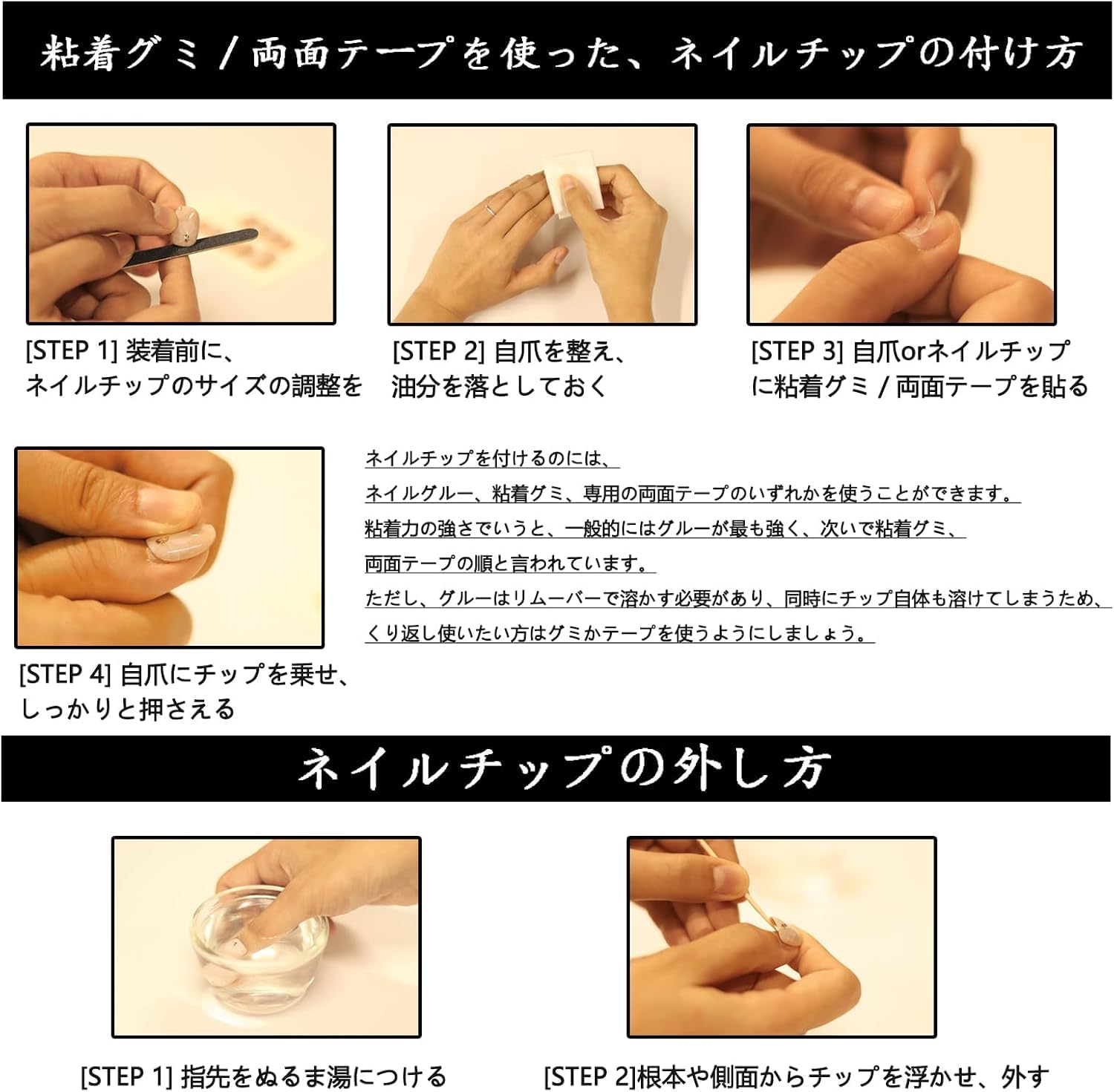 内容:ネイルチップ24枚+付替え用両面テープ24枚+爪やすり1個+ウッドスティック1個