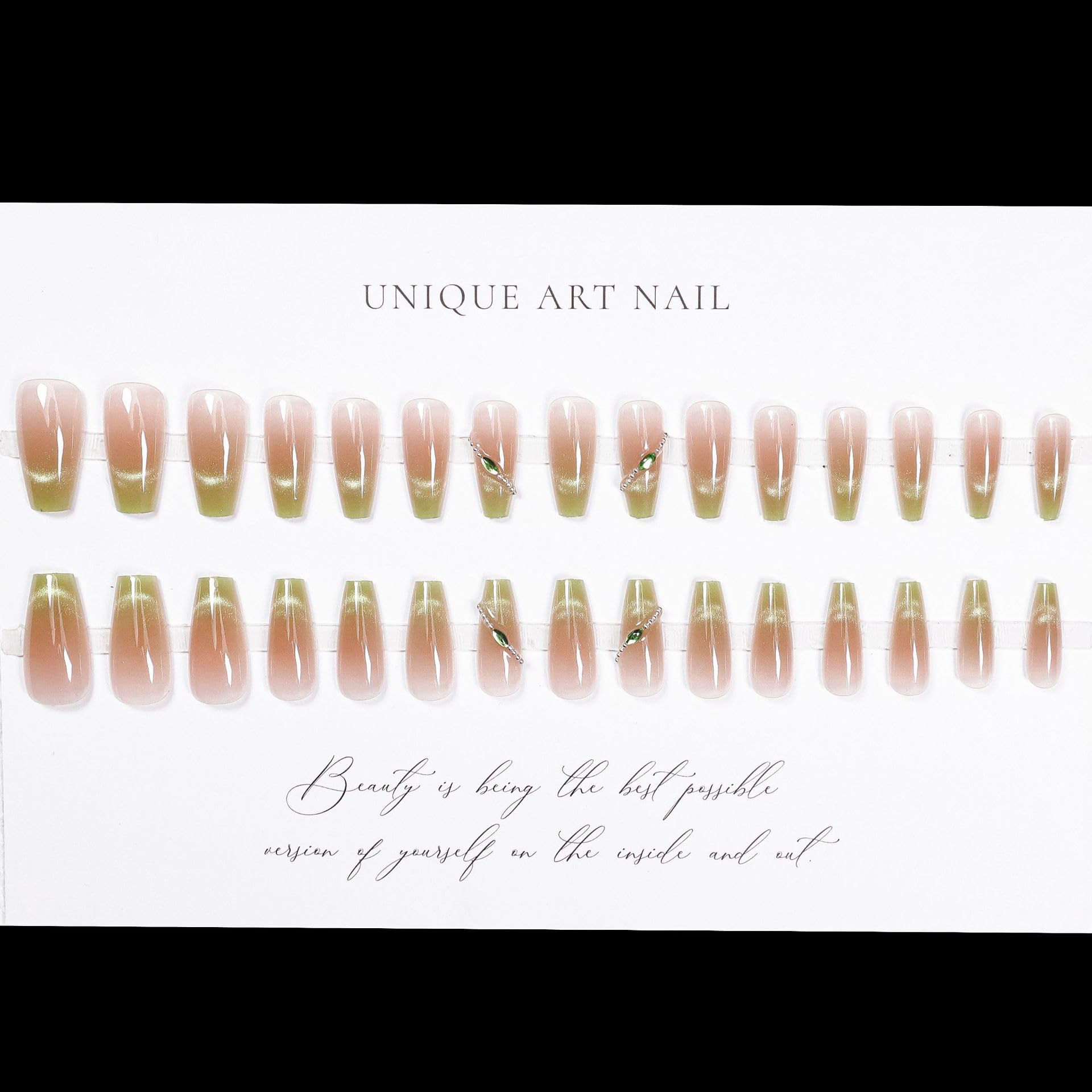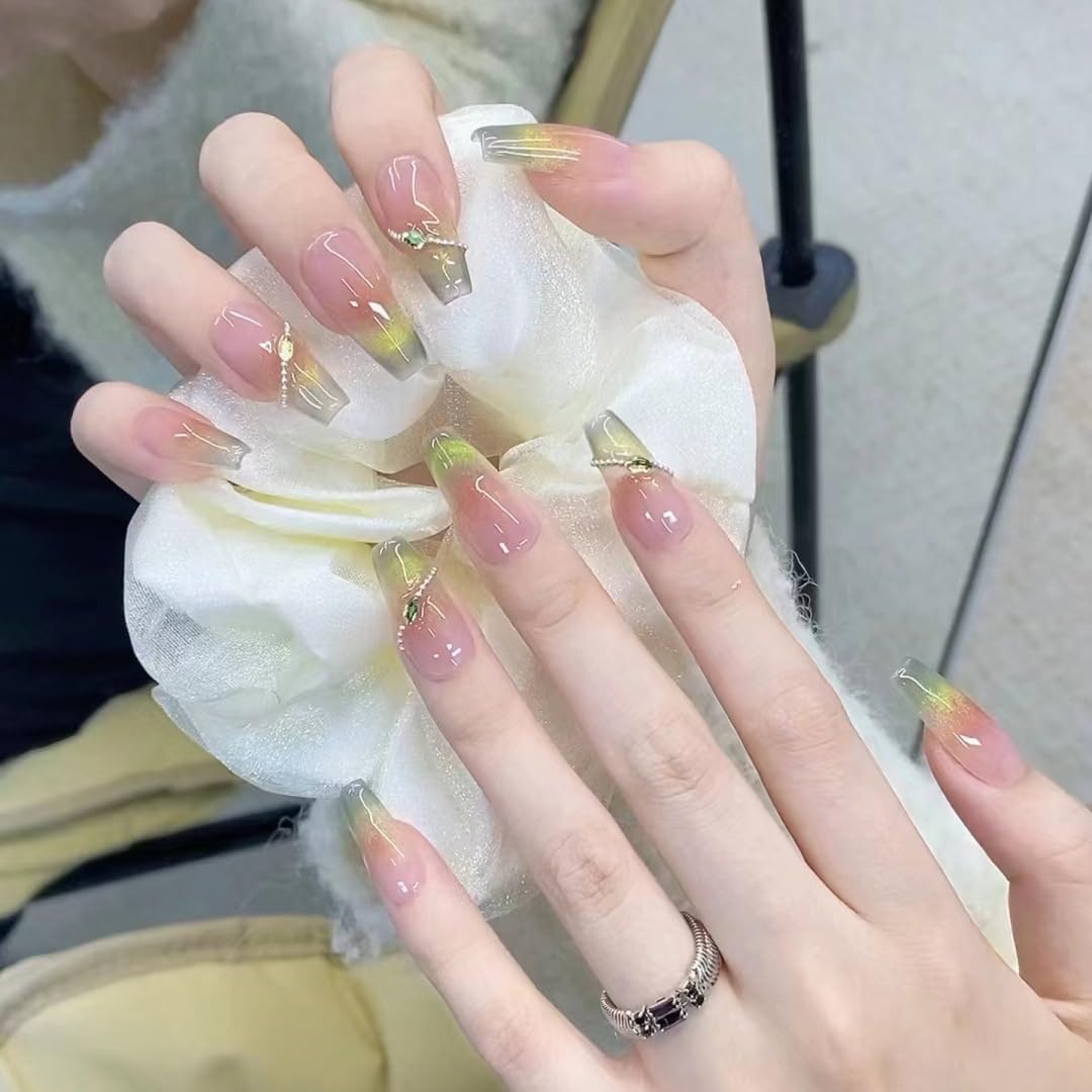 【数量限】ネイルチップ ロング 24枚入 ネイル チップ つけ爪 緑 人気 和風 可愛い シンプル おしゃれパーティー ネイル チップ 秋冬 春夏 花嫁ネイル 光沢 成人式 入学式 卒業式 結婚式 両面テープ付き