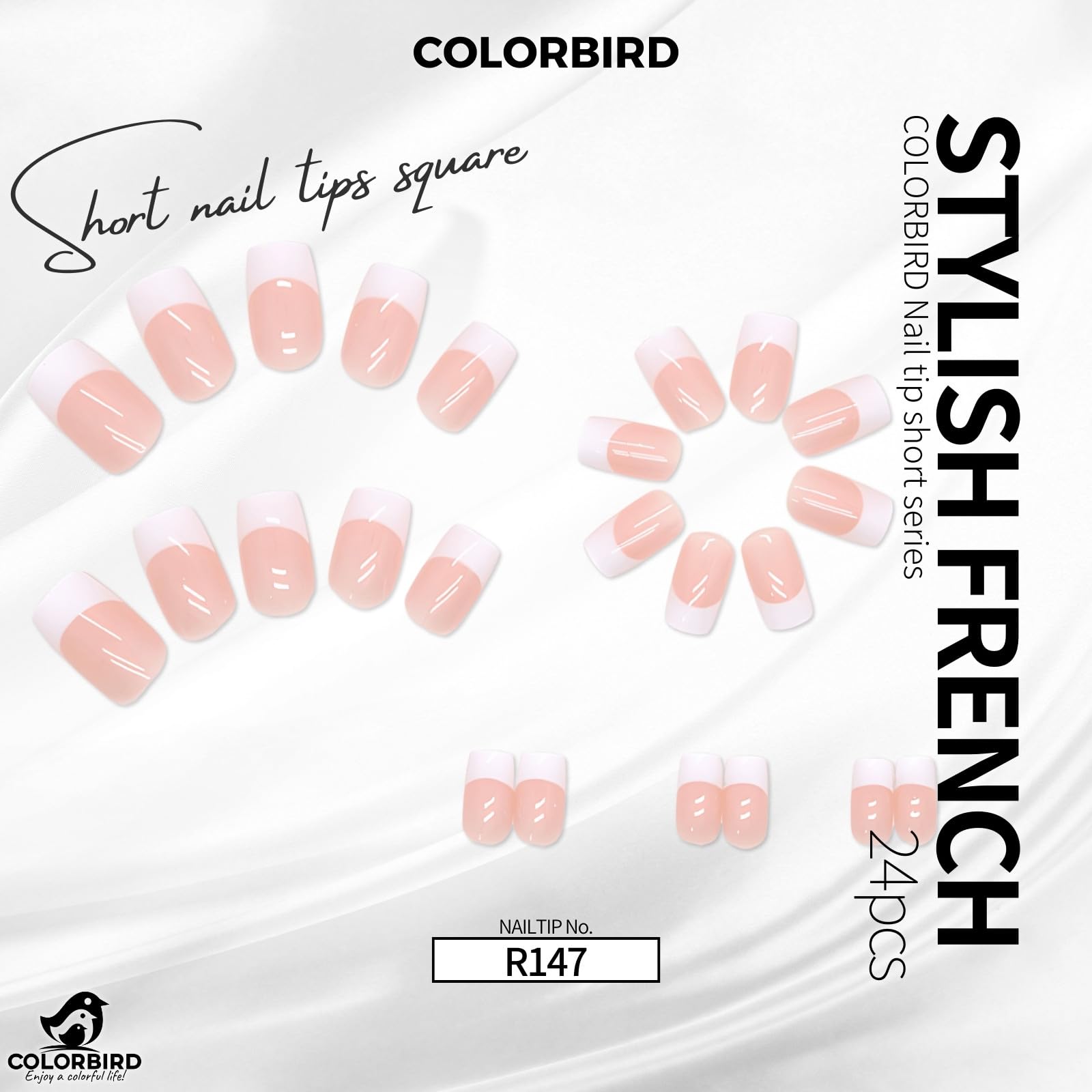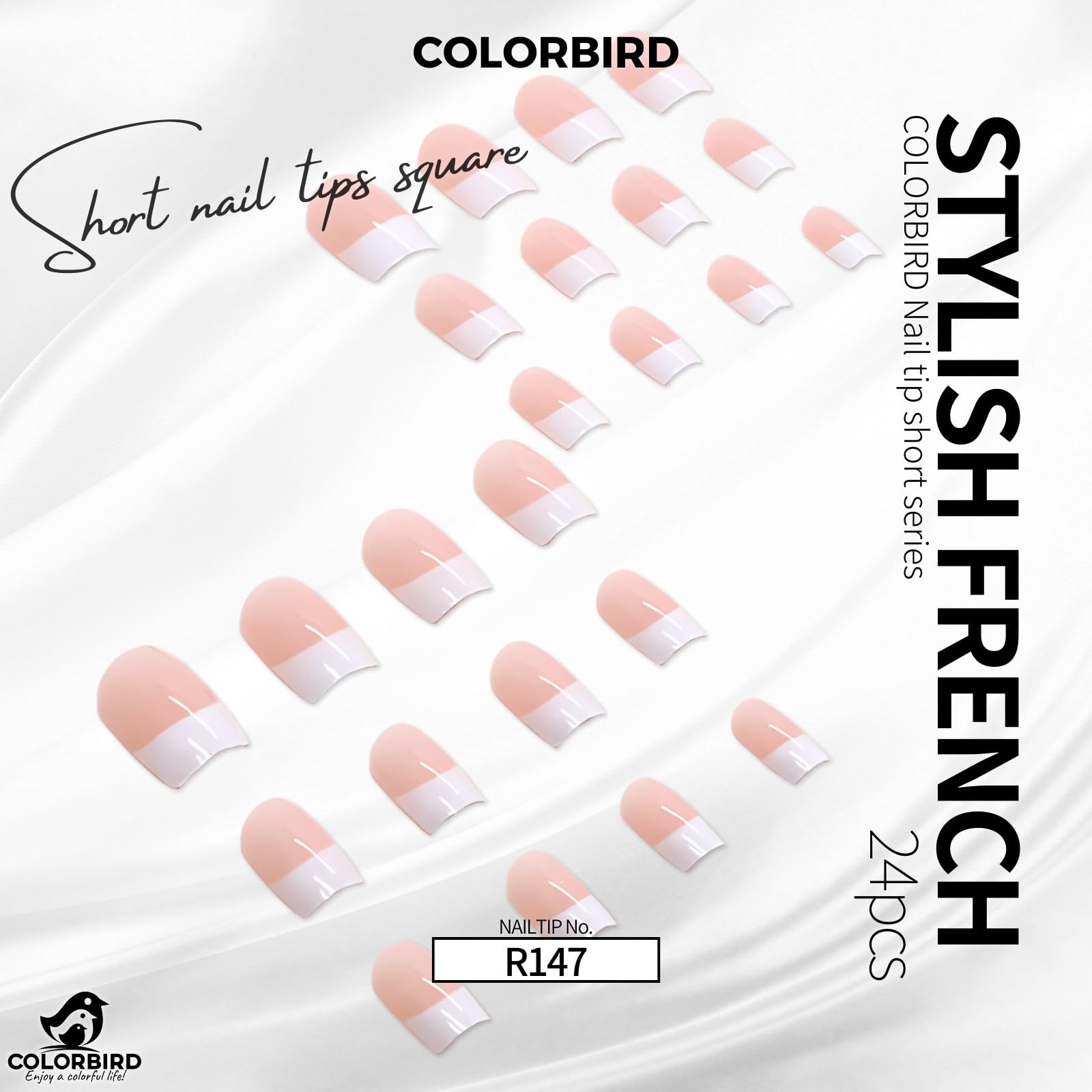 COLORBIRD ネイルチップ ショート 24枚 ピンク 白 フレンチ ネイル 付け爪 チップ 短め 可愛い スクエア (R147)
