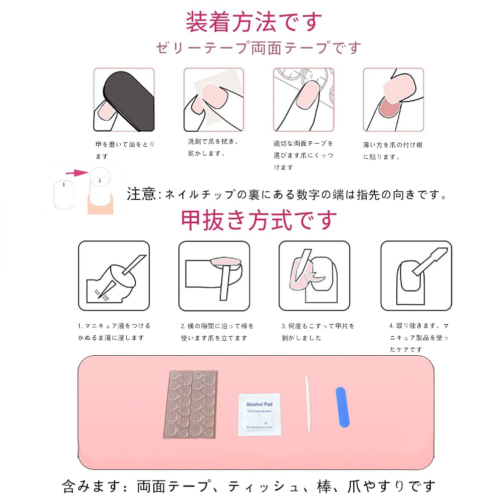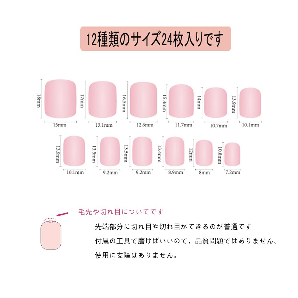 【包装内容】ネイルチップ24枚、両面テープ24枚、爪ヤスリ1枚、木棒1枚。製品に不満や欠陥のある商品を受け取った場合、商品を受け取ってから30日以内にアフターサービスを申請してください。