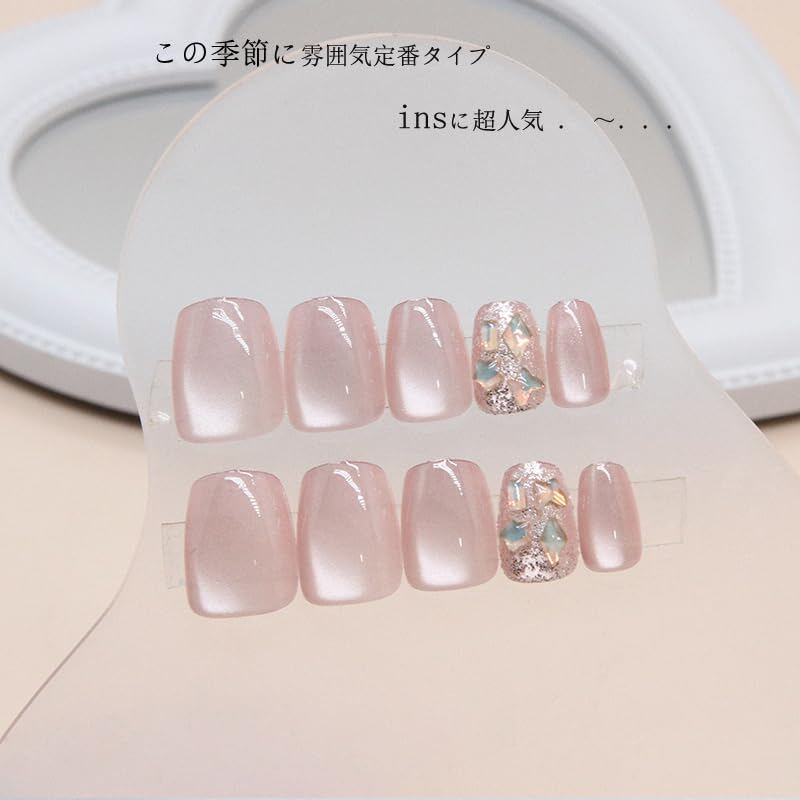 【セール】ネイルチップショート 人気ネイル 24枚入り ネイルチップ ロング春 夏 和風 かわいい ネイルチップ秋冬 手作りネイルチップグラデーション ネイル 花嫁 ショート 光沢 つけ爪 成人式 結婚式長め (オーロラピンク)