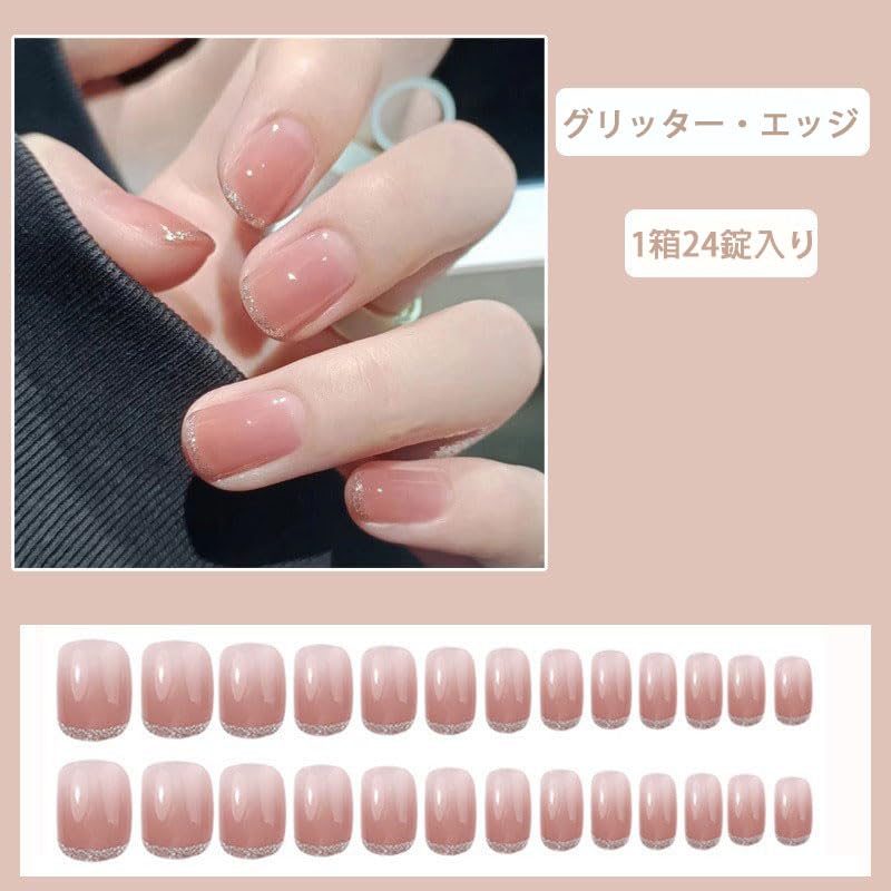 【在庫処分】YINKE ネイル チップ 24枚入 ネイルチップ ショート ネイル用品 春夏 ラウンドチップ 人気 和風 シンプル おしゃれ ショート雰囲気色 光沢 つけ爪 成人式 入学式 卒業式 結婚式 両面テープ ウッドスティック ネイルファイル付き (グリッター・エッジ)