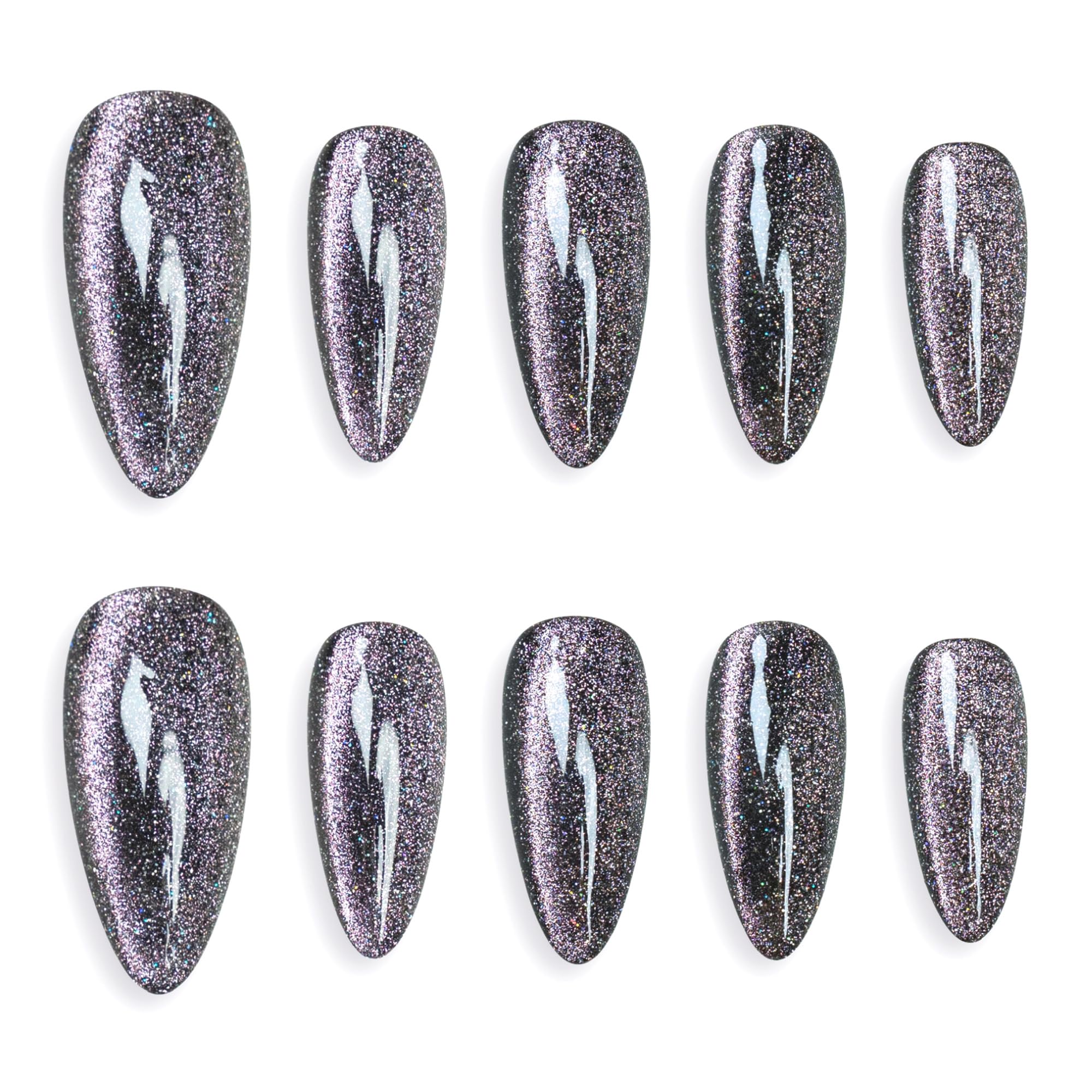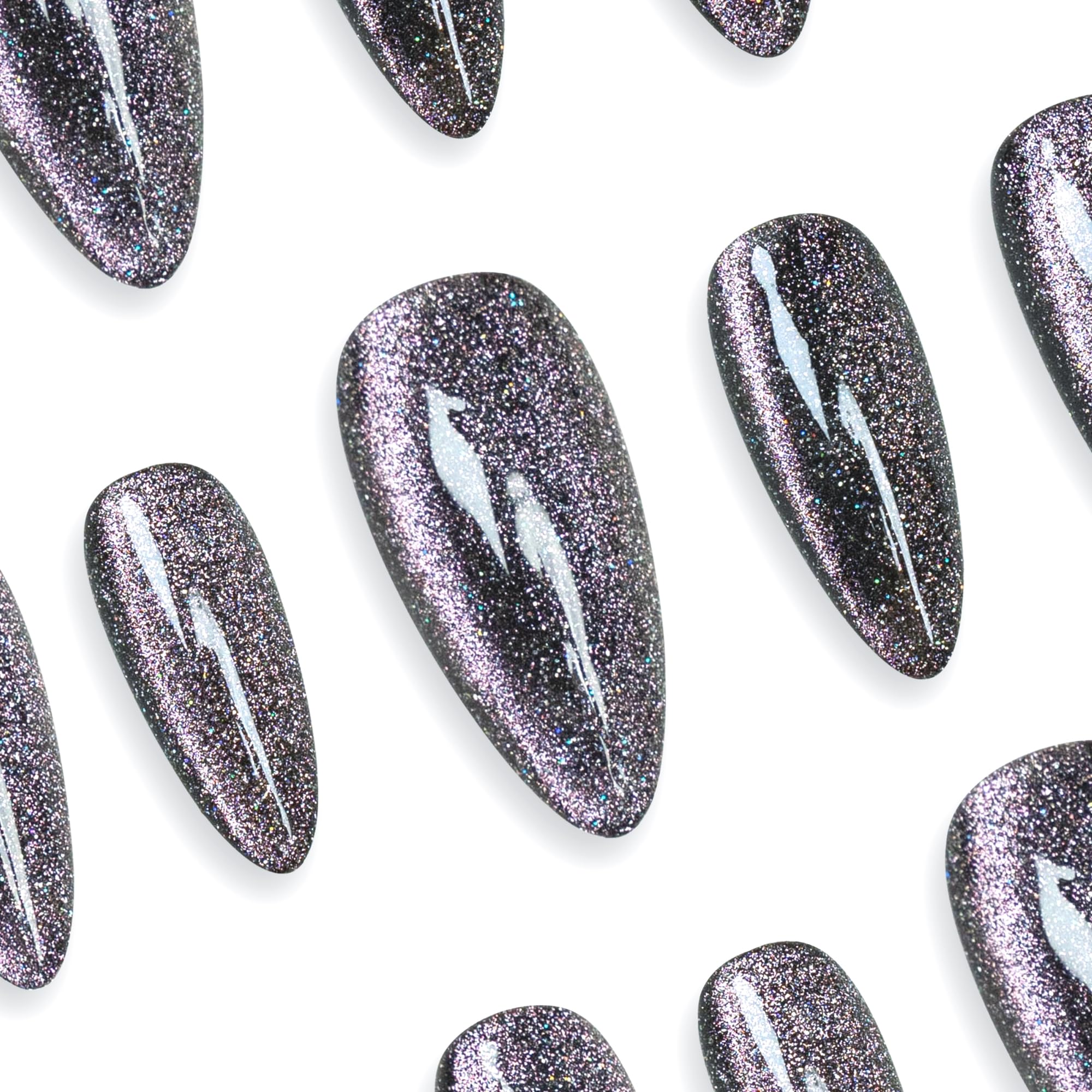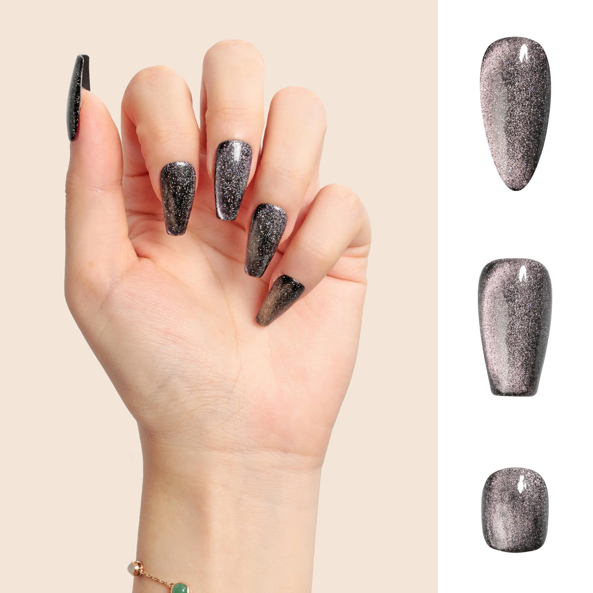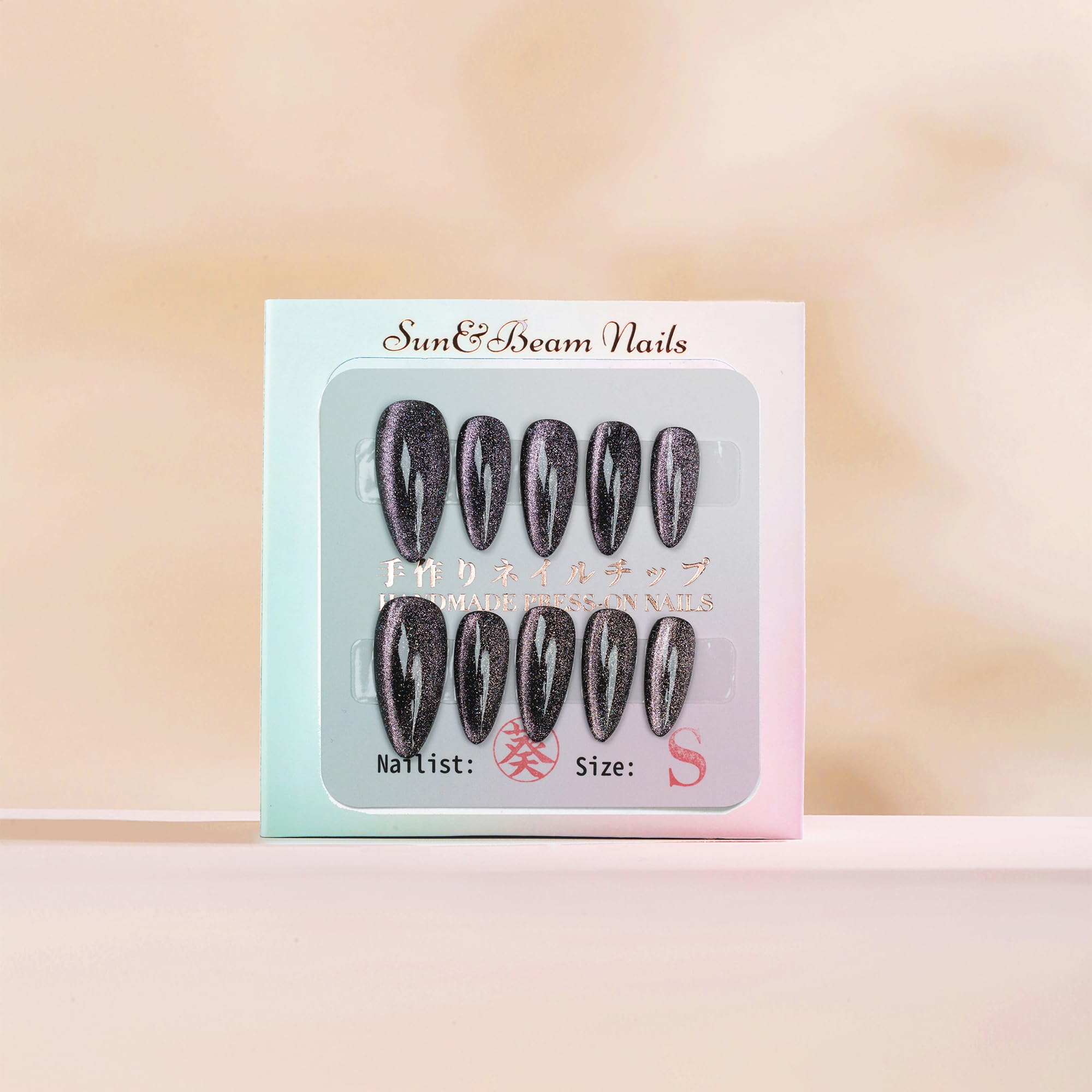 【在庫処分】Sun&Beam Nails 手作り ネイルチップ ミディアム ロング アーモンド 無地 ブラック ピンク キャッツアイ マグネット おしゃれ 付け爪 10枚入 (#126 L) | GIGATERA