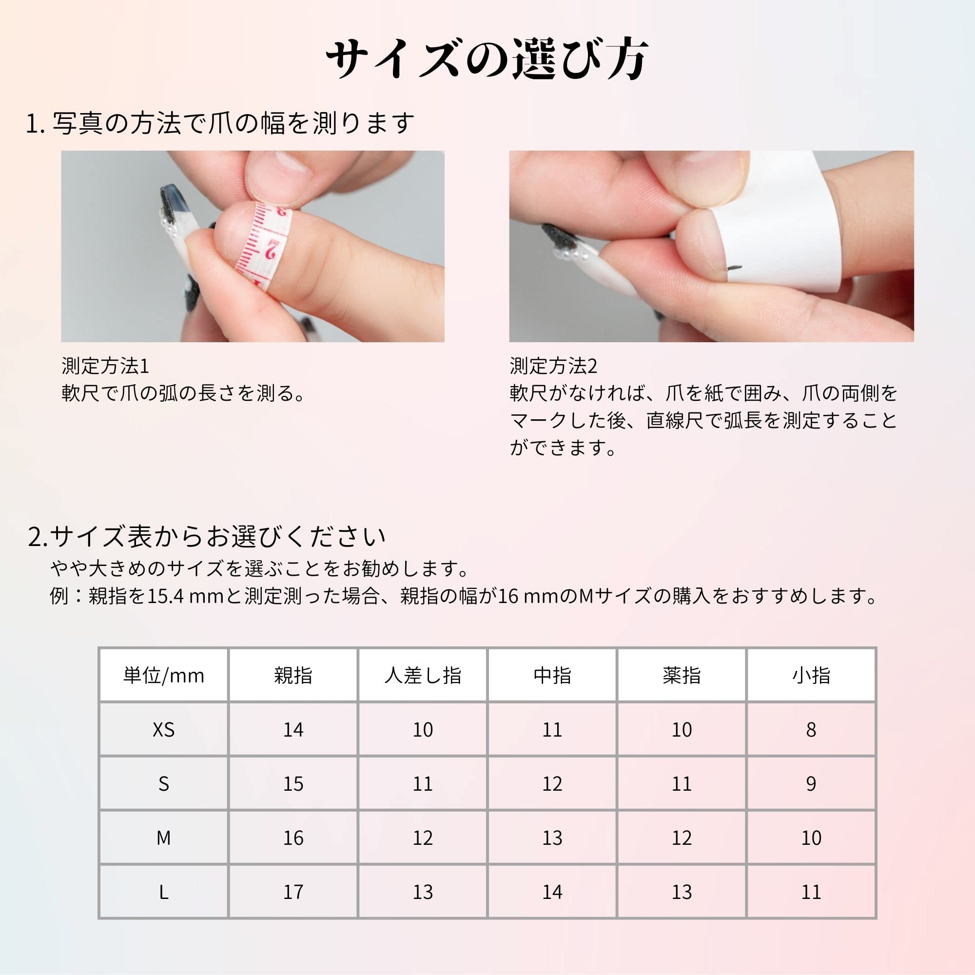 ??【形とサイズ】爪の形:アーモンド;??長さ: 中等長(18~24mm) ※サイズの選び方と測り方については商品画像を参照してください。