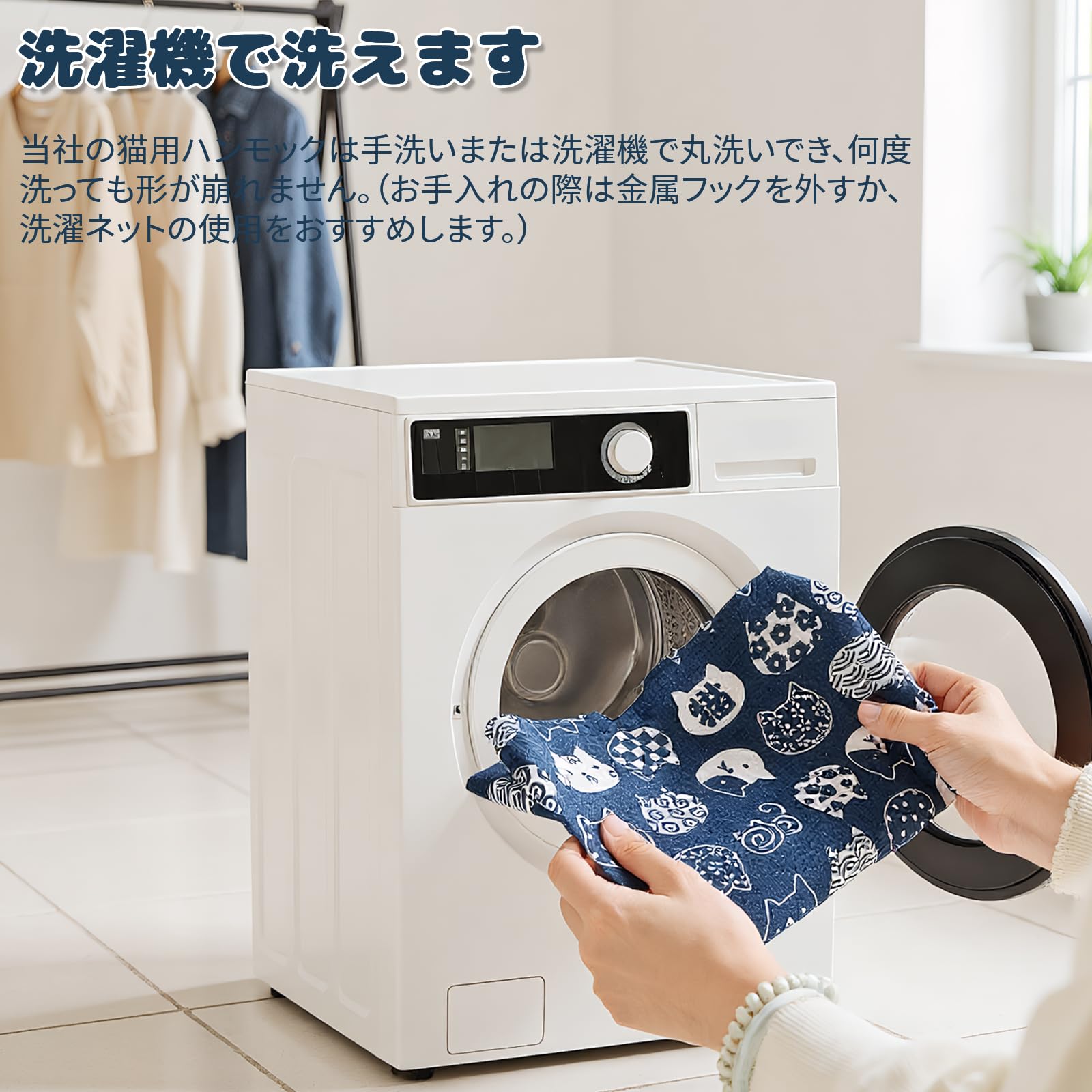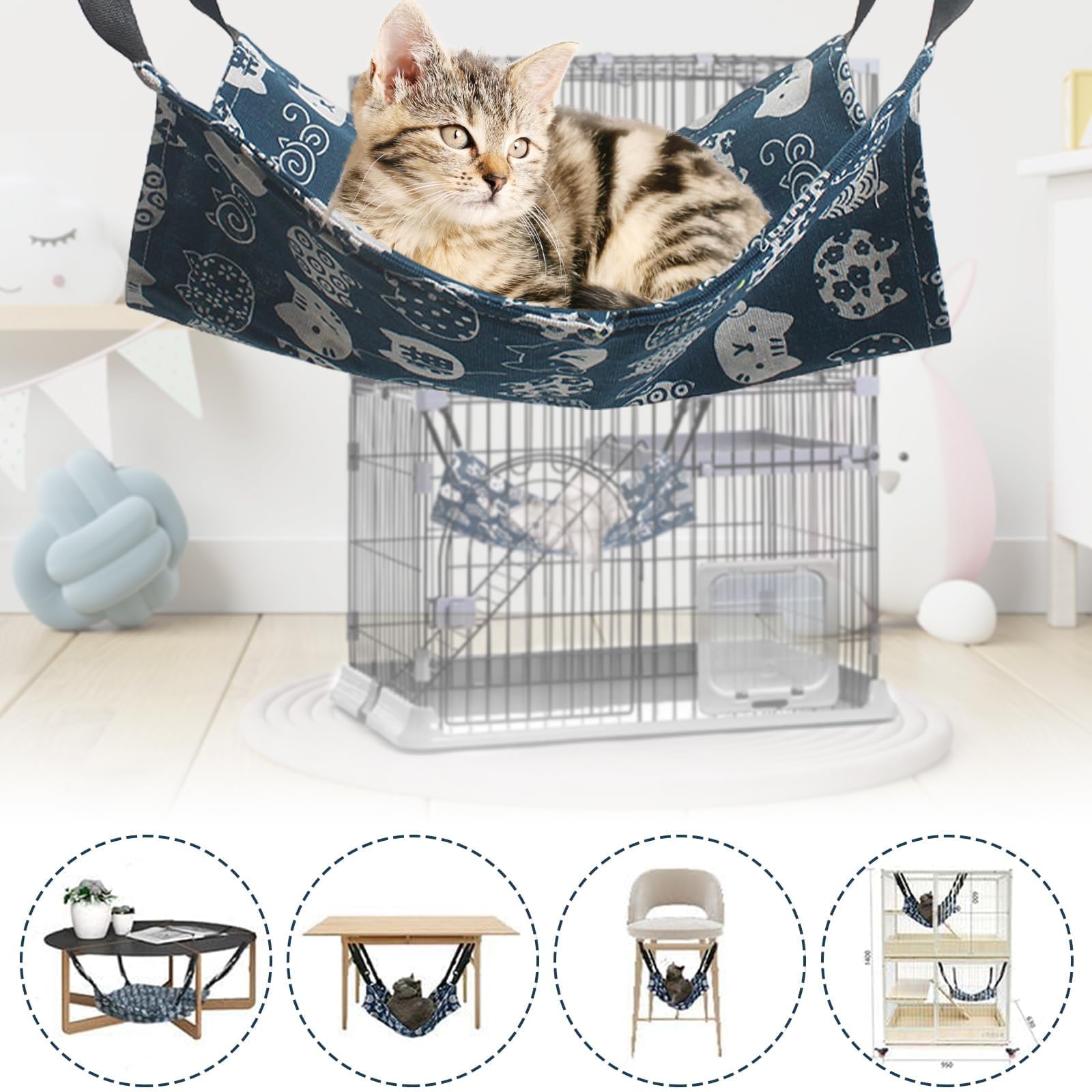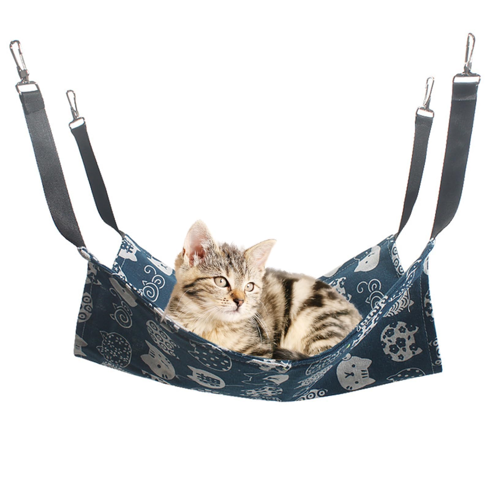 【お手入れ簡単】:猫用ハンモックは洗濯に対応しており、毎日の掃除に便利で、猫の休憩スペースを常に清潔で衛生的に保ちます。耐用年数を延ばすために、掃除の際には金属フックを取り外すか、ランドリーバッグを使用することをお勧めします。
