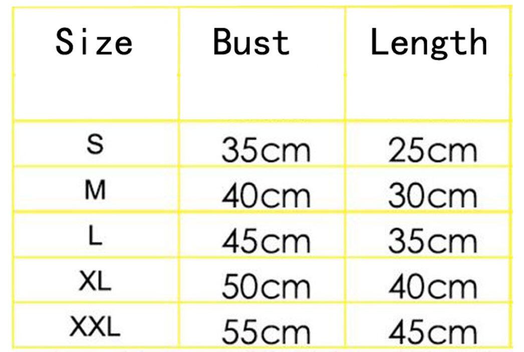サイズ: S バック長:約25cm バスト:約35cm 首回り:24cm; M バック長:約30cm バスト:約40cm 首回り:27cm; L バック長:約35cm バスト:約45cm 首回り:30cm; XL バック長:約40cm バスト:約50cm 首回り:33cm