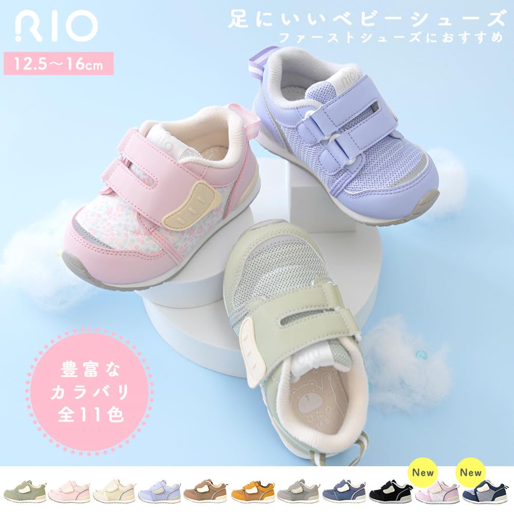 [RIO] ベビーシューズ 12.5cm-16cm 全11色 足に良い 保育士推奨 ガバっと開く 履かせやすい 履きやすい 歩きやすい 足に優しい 軽量 足育 ファーストシューズ スニーカー 子供靴 出産祝い プレゼント ギフト