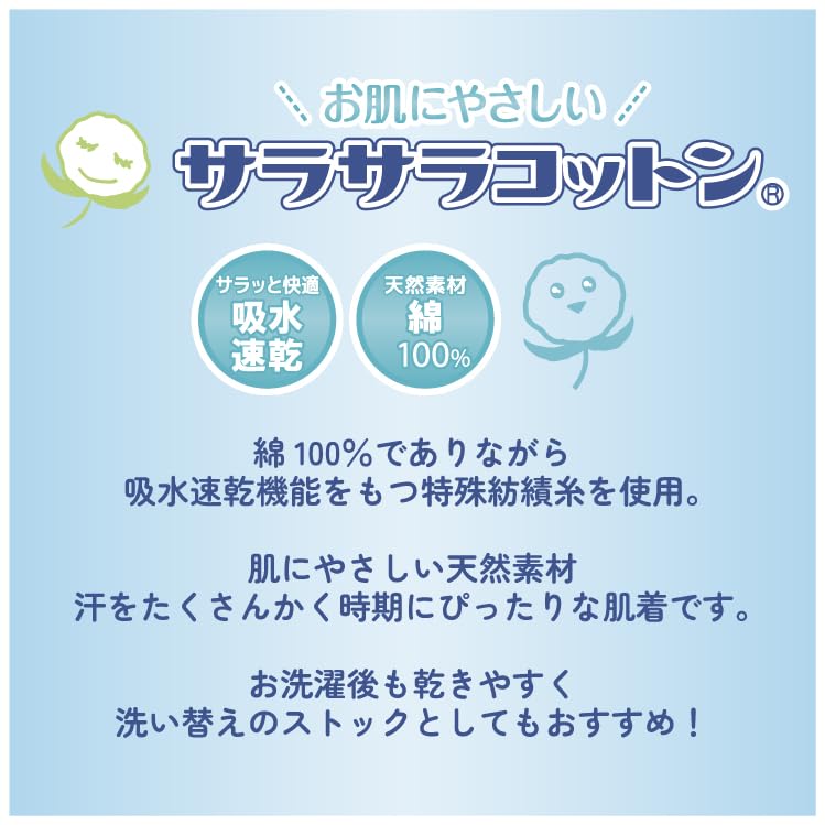 サラサラコットンはカンボジア製でコットン100%でありながら吸水速乾、抗菌防臭、弱酸性の肌にやさしい肌着です。