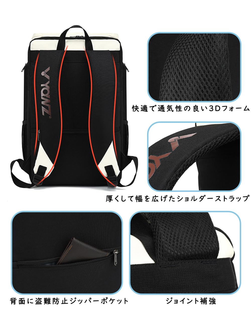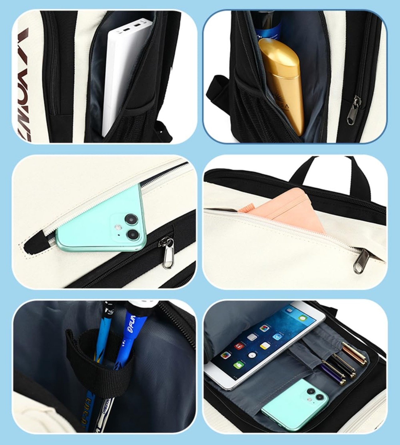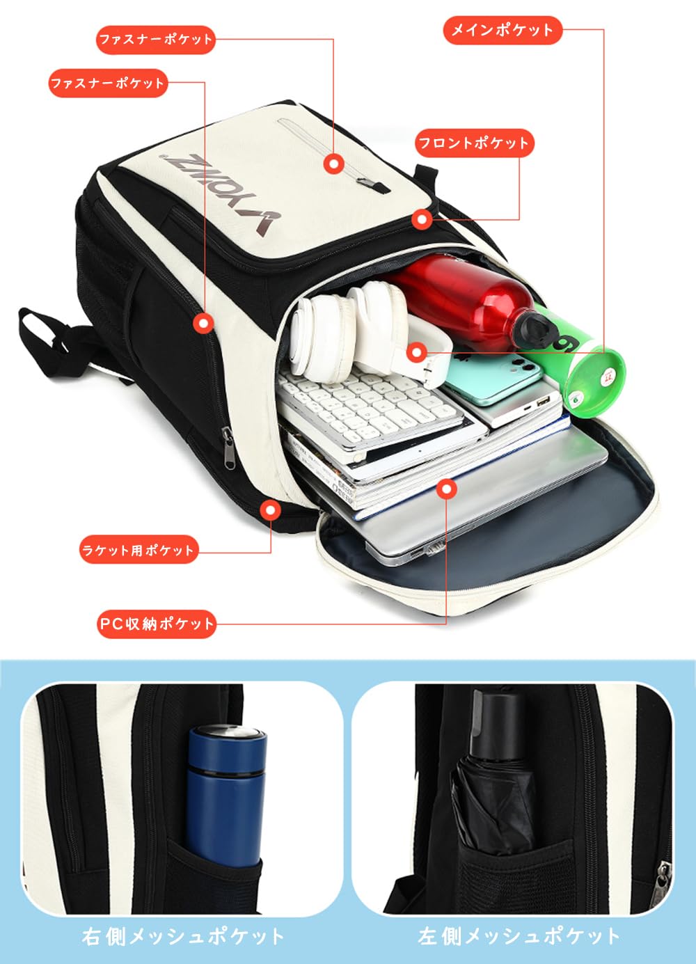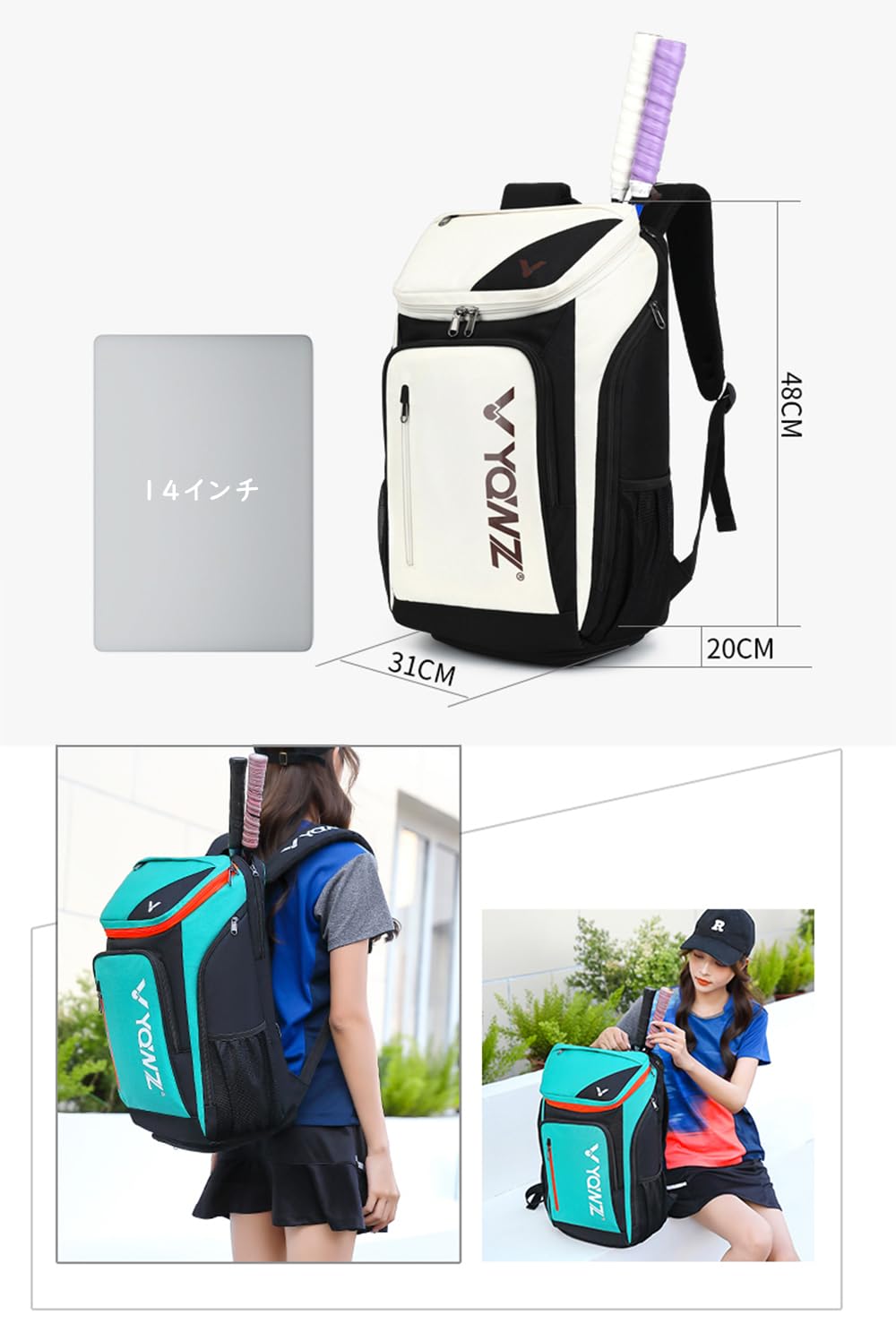 ?【優れた収納性能】ラケットバッグには、3本のラケットを収納できるほか、14インチPC、携帯電話、衣類、書籍などを収納できる複数の機能的なポケットを備えています。