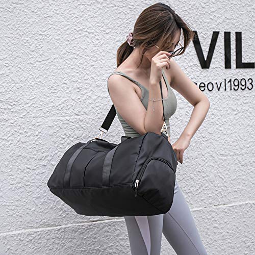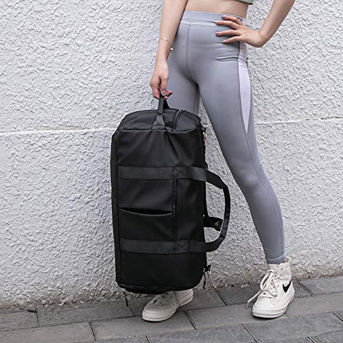 【在庫処分】スポーツバッグ 修学 旅行カバン 大容量 ボストンバッグ ジム ヨガ 出張 duffel bag 35L シューズ収納付き 一泊二日 乾湿分離 斜めがけ 手提げ 肩掛けバック (ブラック)