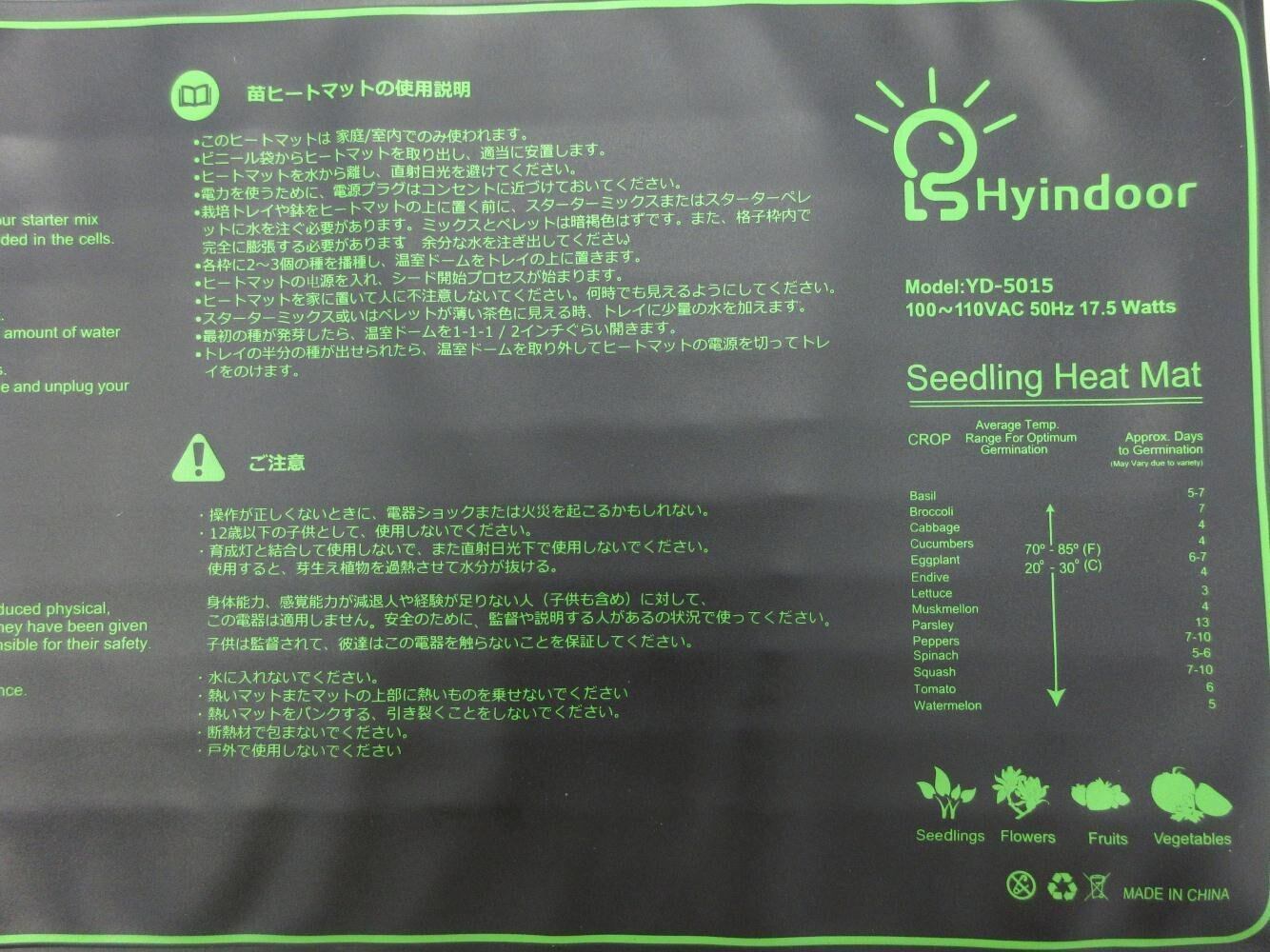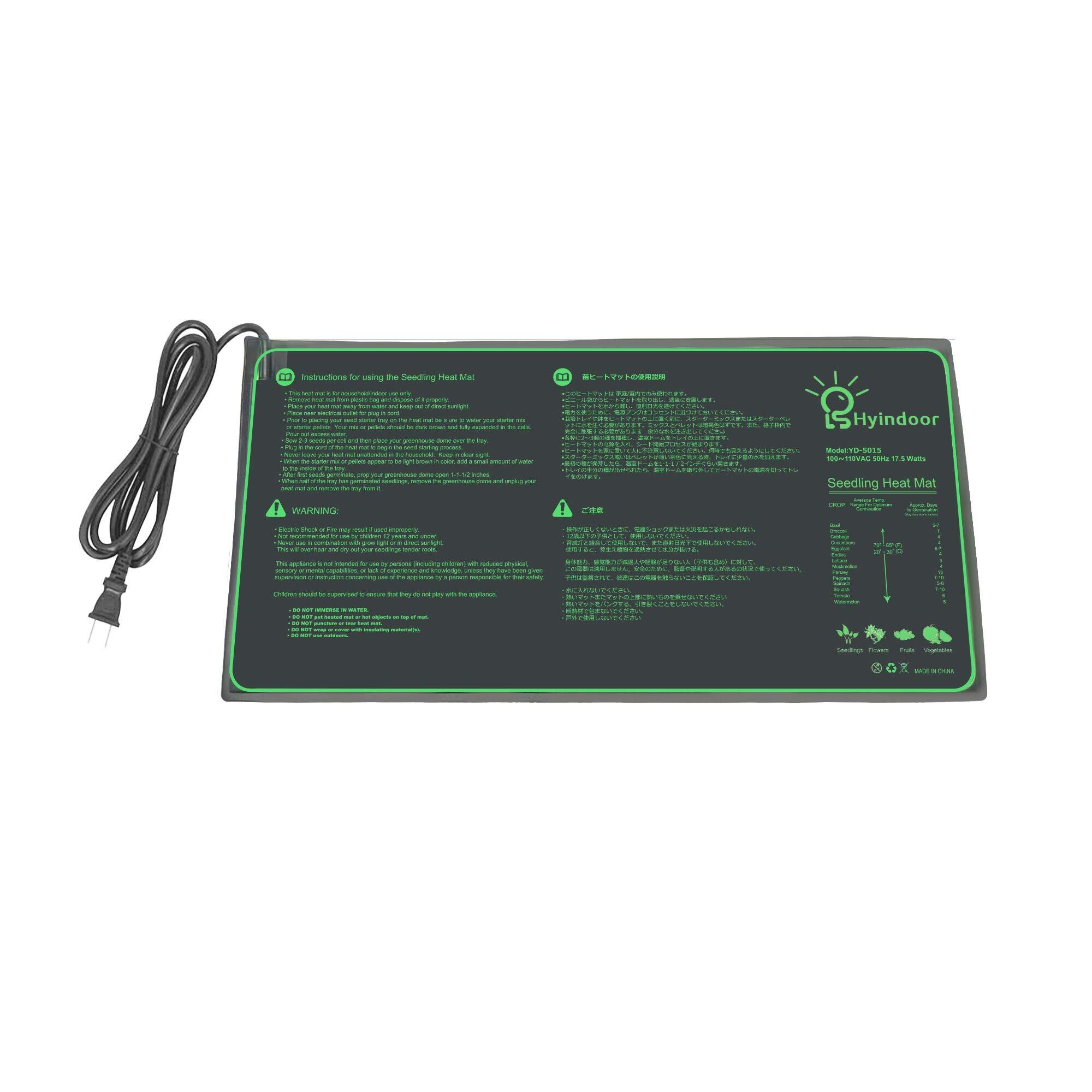 Hyindoor 植物ヒーターマット園芸ヒートマット サーモスタット付き 育苗ヒーター 発芽マット 温度制御 温床関連 育苗器 (コントローラなし)