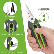 【はさみ安全保管】刃の保護カバーが付属しておりますので、鋏を長久に使用することを保護します。鋏自体にも安全ロック機能が付き、剪定の後は、はさみを閉じストッパーでロックをかけることができますので、安全に保管することができます。