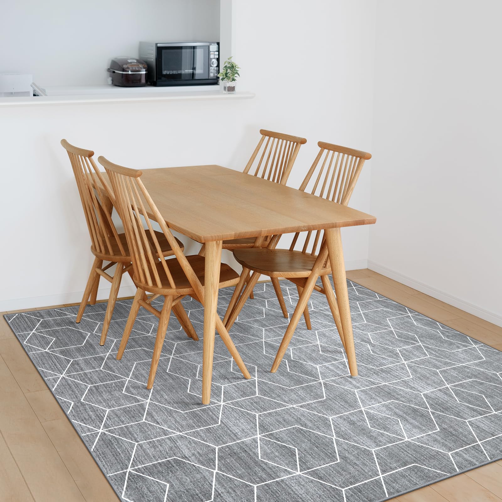 HAOCOO カーペット 2畳 190х190cm 正方形 ラグ 洗える 北欧風 ホットカーペット対応 滑り止め 幾何 床保護 防音 リビング シェニール ラグマット オールシーズン適用 抗菌防臭 耐磨耗性 ハニカム柄 グレー