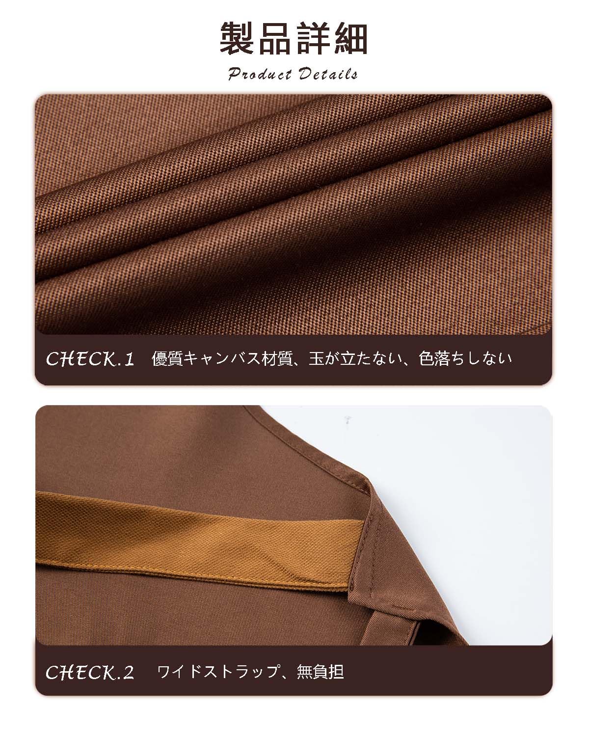 【高品質の帆布素材】このおおしゃれエプロンは、高品質の帆布素材を使用しており、柔らかく快適で、しわになりにくい特徴があります。さらに、防汚性、通気性、色あせしにくい、洗濯後に縮まないなどの特長も備えています。そのシンプルでおしゃれなデザインが好評を博しています。