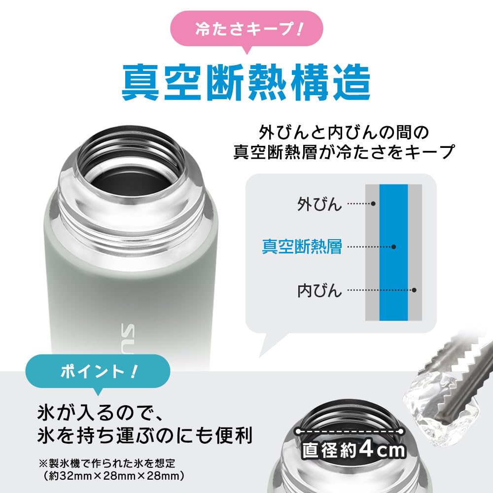 外びんと内びんの間の真空断熱層が冷たさをキープ。