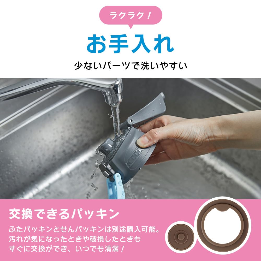 少ないパーツで洗いやすい。ふたパッキンとせんパッキンは別途購入可能。