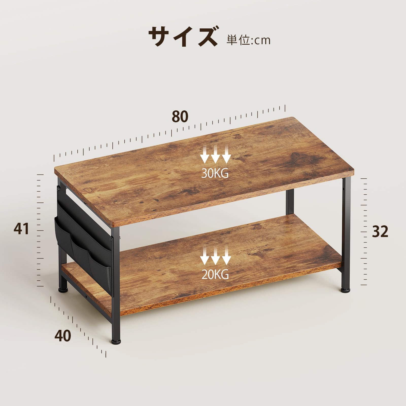センターテーブル リビングテーブル 幅80 ローテーブル 一人暮らし 収納袋付き コーヒーテーブル ピンテージ