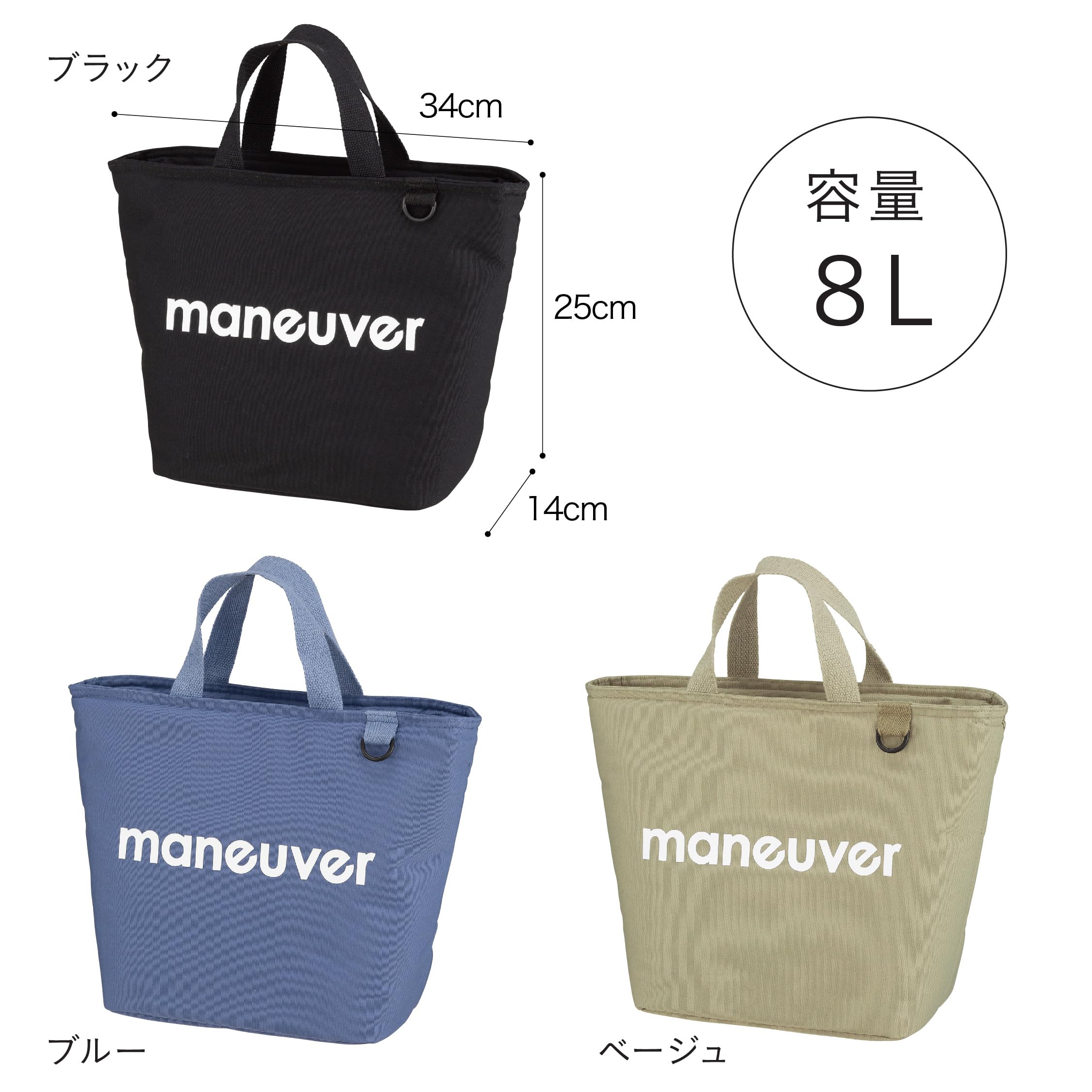 お弁当や水筒以外にも、携帯電話や財布、ペンケースや化粧品など、まとめて一緒に持ち運べる便利なサイズ感の「maneuver(マヌーバ)保冷ランチトートバッグM」