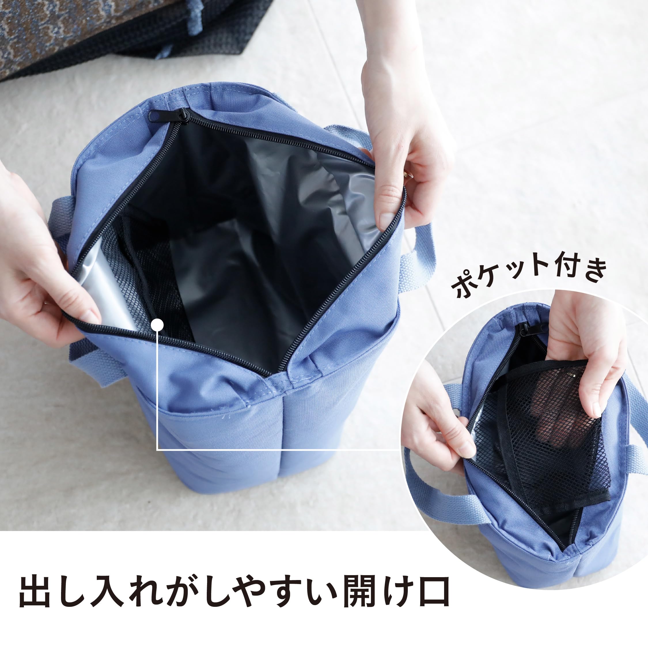 軽くて扱いやすいサイズなので、通勤時やピクニックなどのレジャー、普段使いもしやすいデザインなので、ちょっとした買い物でも気軽にお使いいただけます。