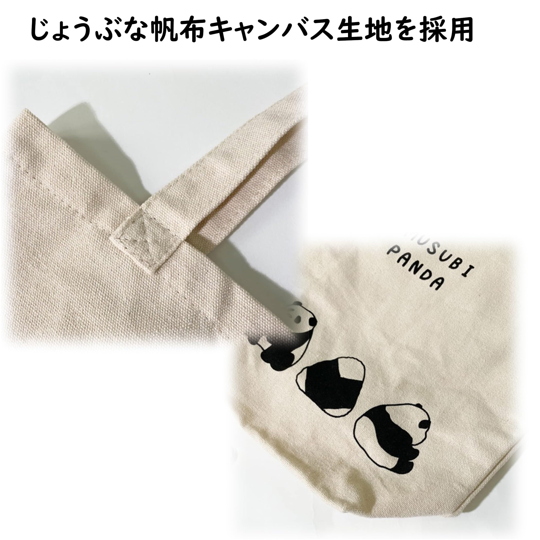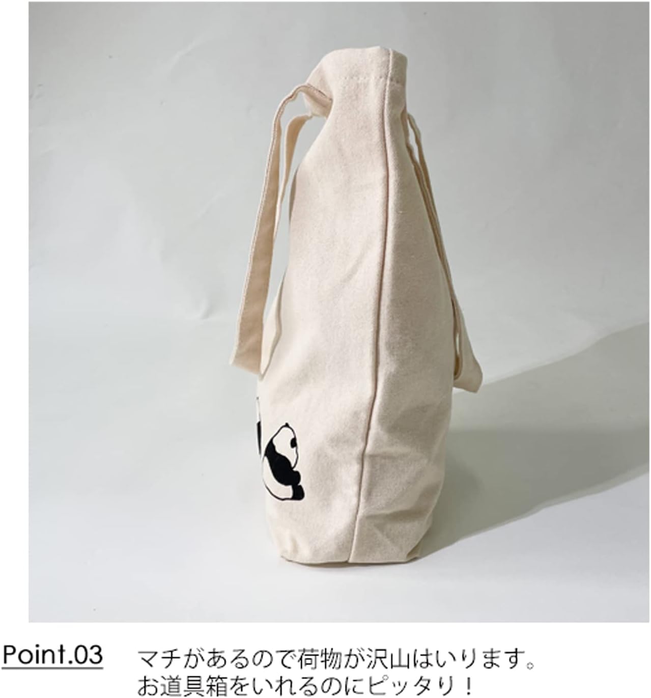 かわいいパンダ プリントのトートバック。 縦型がノートなどスッキリ入るスタイル。マチ付きなので荷物が沢山入ります。 内ポケット付きで便利◎