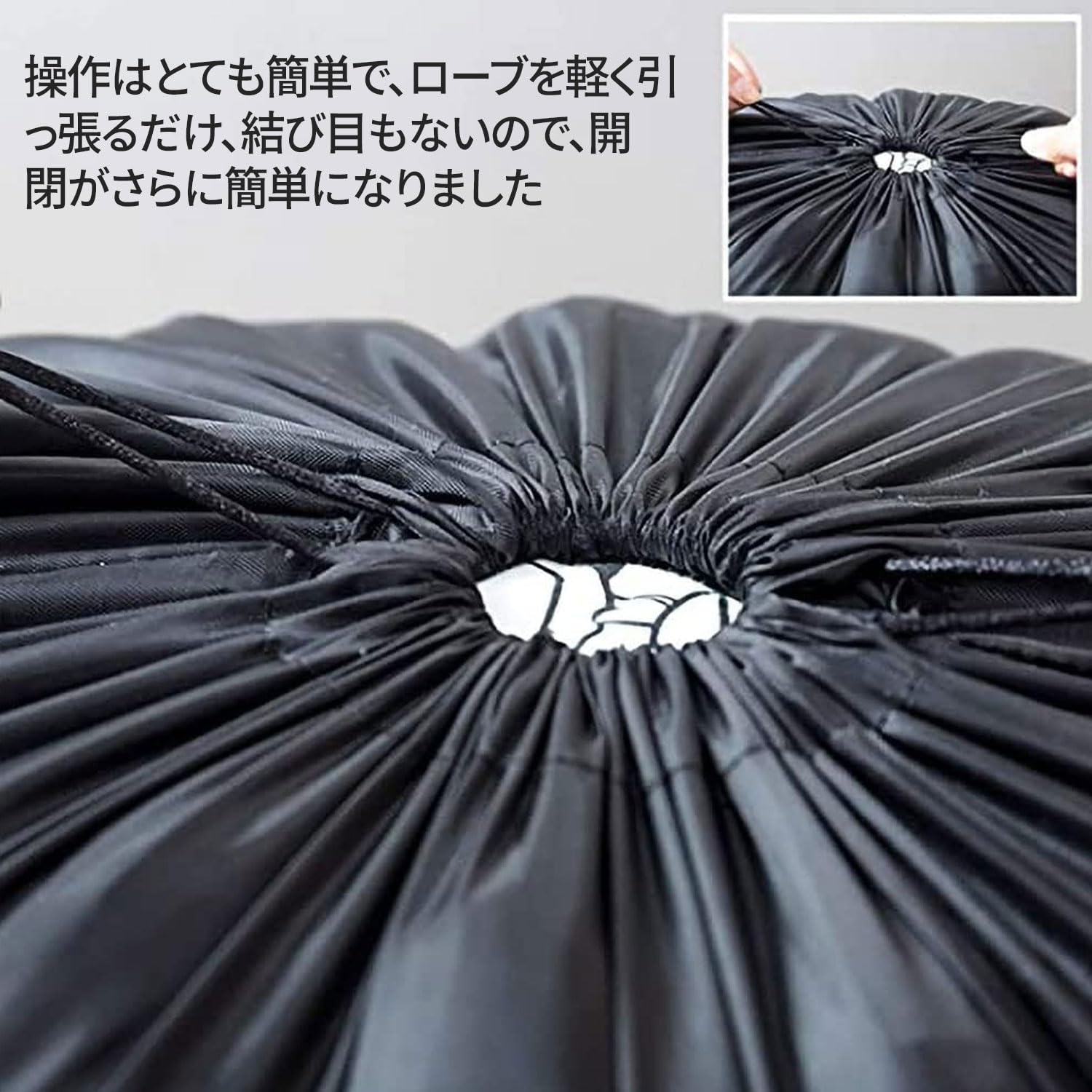 【二つの巾着紐】両側に二つの巾着紐があり、使いやすいです。操作はとても簡単で、紐を軽く引っ張るだけで、結び目がないので開閉が簡単です。