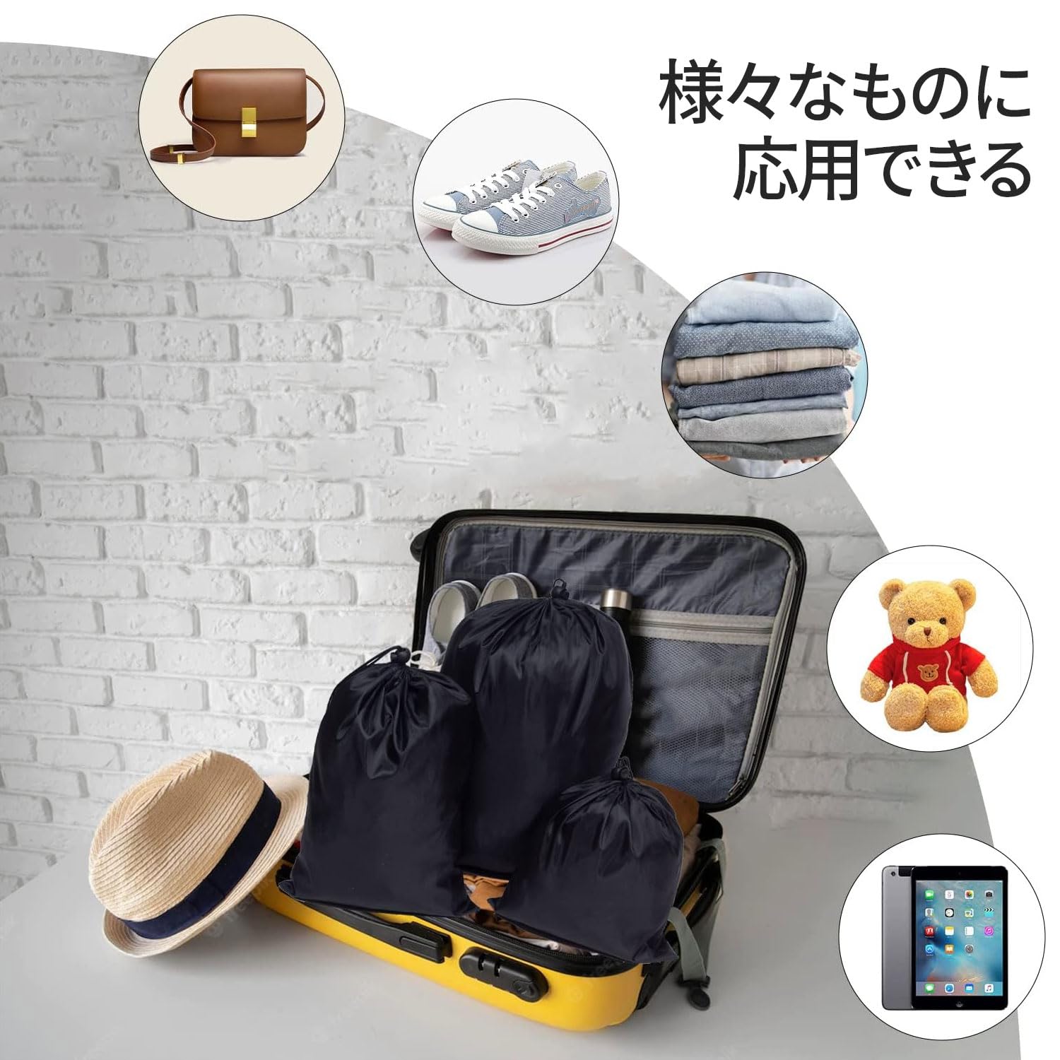 巾着袋 1枚 大 オーガナイザー 防水 防塵 靴袋 旅行 寝具 収納袋 洗える 旅行用 出張用