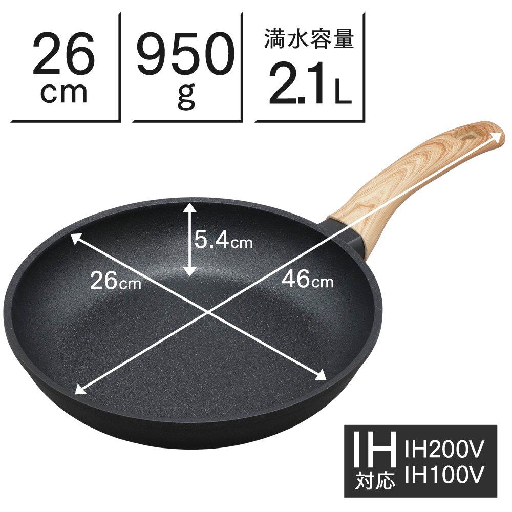 【特価在庫】アイリスオーヤマ(IRIS OHYAMA) IH 対応 フライパン 26cm スキレットコートパン ブラック SKL-26IH