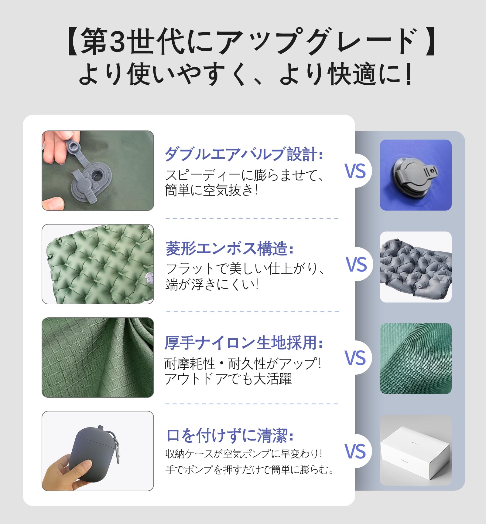【安心な】当店でご購入されたエアーマットは6ヶ月のがあるため、期間内の商品不良は対応いたしますので、より安心的お買い物いただけます。