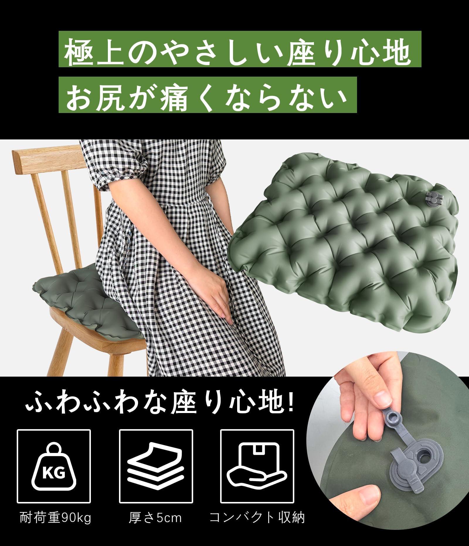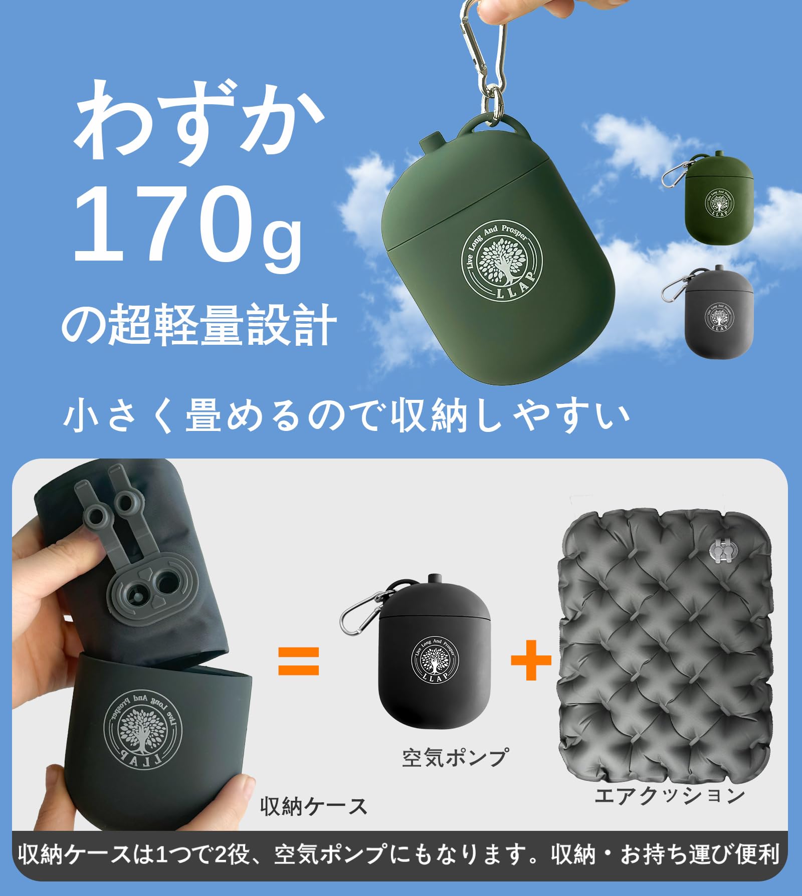 LLAP 折りたたみマット エアー 座布団 シート クッション (厚さ5cm/折りたたみ/軽量 コンパクト) キャンプマット アウトドア マット レジャーシート 収納ケース付き 花見 キャンプ アウトドア用品 ダックグリーン