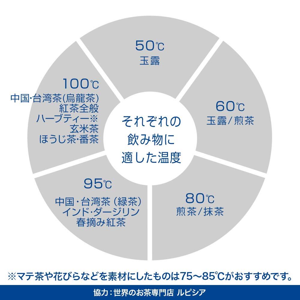 ボタンを押すだけで50、60、80、95、100℃の5段階設定が可能