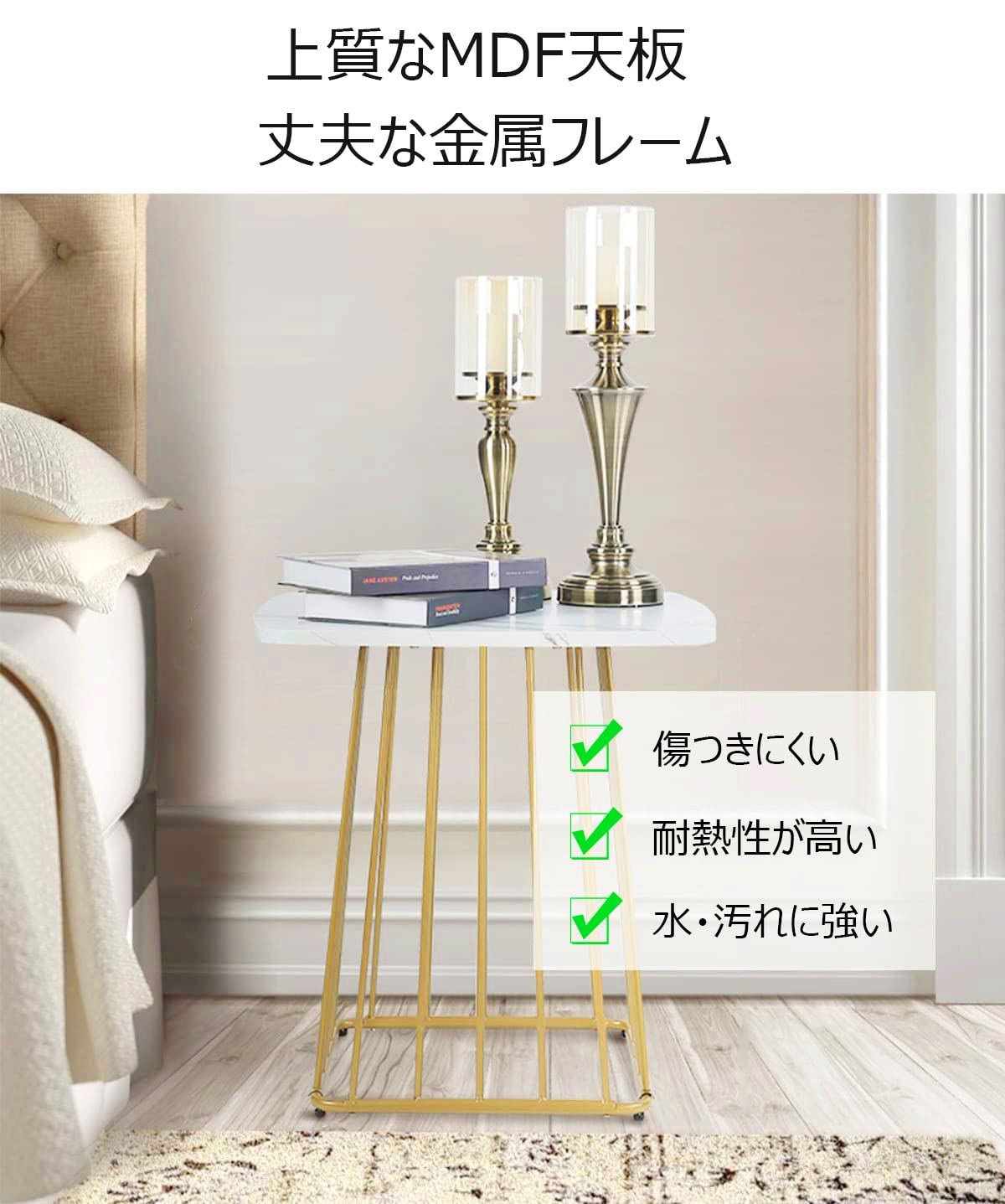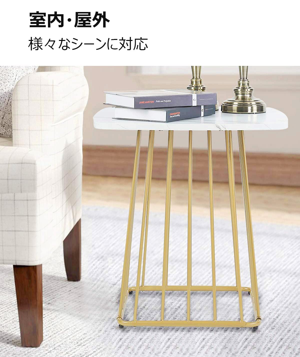 【サイドテーブル 制品の設計の理念】テーブルイタリアのシンプルな軽奢スタイル、シンプルで寛大な、北ヨーロッパの風。リビングテーブル おしゃれユニークな金属脚が上質な雰囲気も味わえる,一般的なテーブルである4本脚ではなく、金属フレームを使用したタイプで、部屋に置けば上質な雰囲気を味わえます。テーブルは角が丸く加工されているので、小さいお子さんがいる家庭でも安心して使えますよ。小さいテーブルおしゃれサイドテーブル古典的丸テーブルコーナー、美しく、安全に使用できます。カフェテーブル金のフレームを配して、テーブル 一人暮らし完璧に組み合わせて、大理石調のテクスチャーパネルにプレがトレンドを演出!大理石 テーブルサイドテーブル おしゃれ主人の家の高級で、おしゃれで、高品位な品質の生活を見せます!おうちの高級感が倍増!