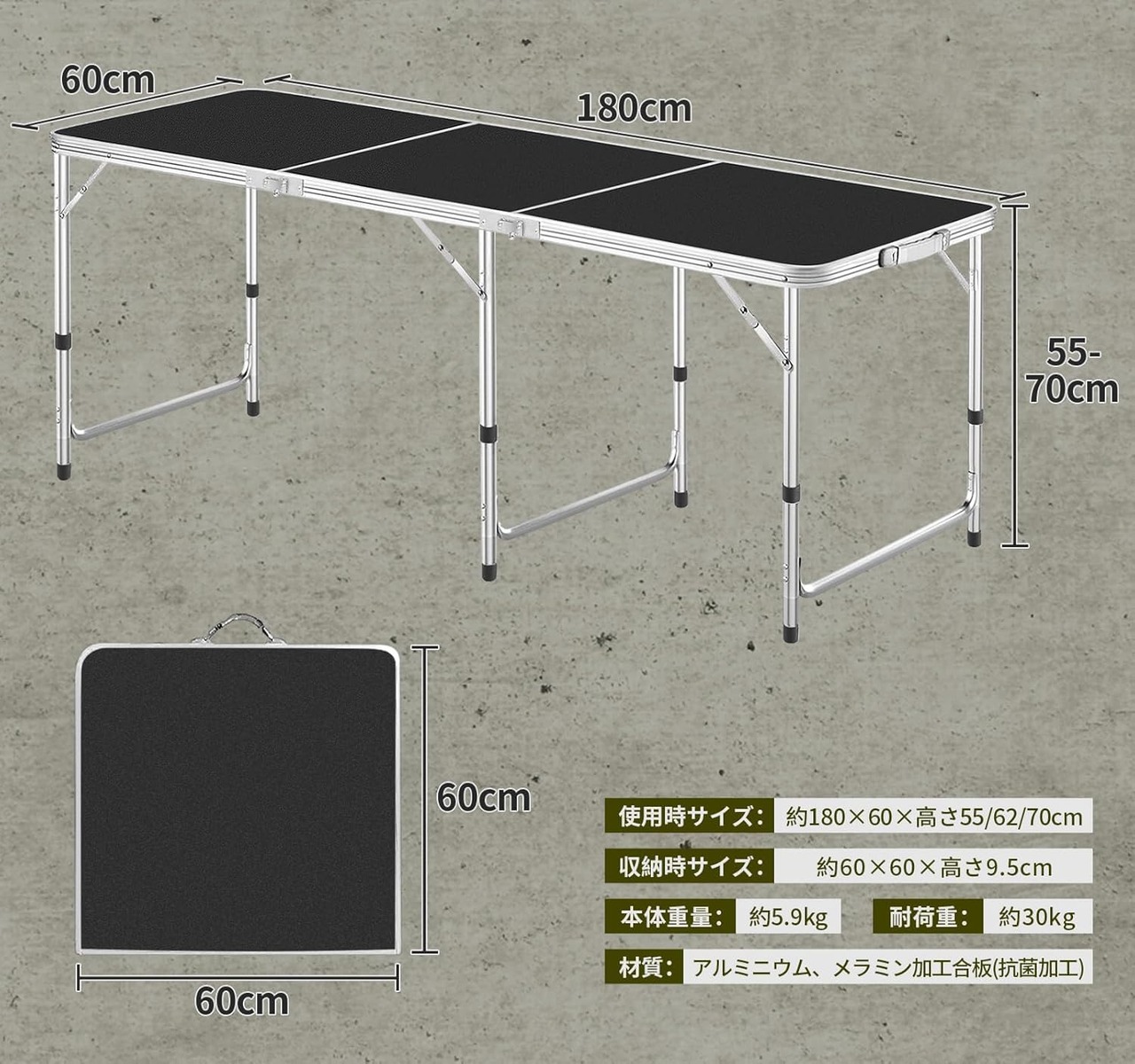 【数量限】【日本企業】キャンプテーブル アウトドア テーブル 単品/セット 折りたたみ 180CM 3段階高さ調整可能 ピクニック レジャー キャンプ用 折畳み コンパクト 収納 簡単組立LK008(くろセット)