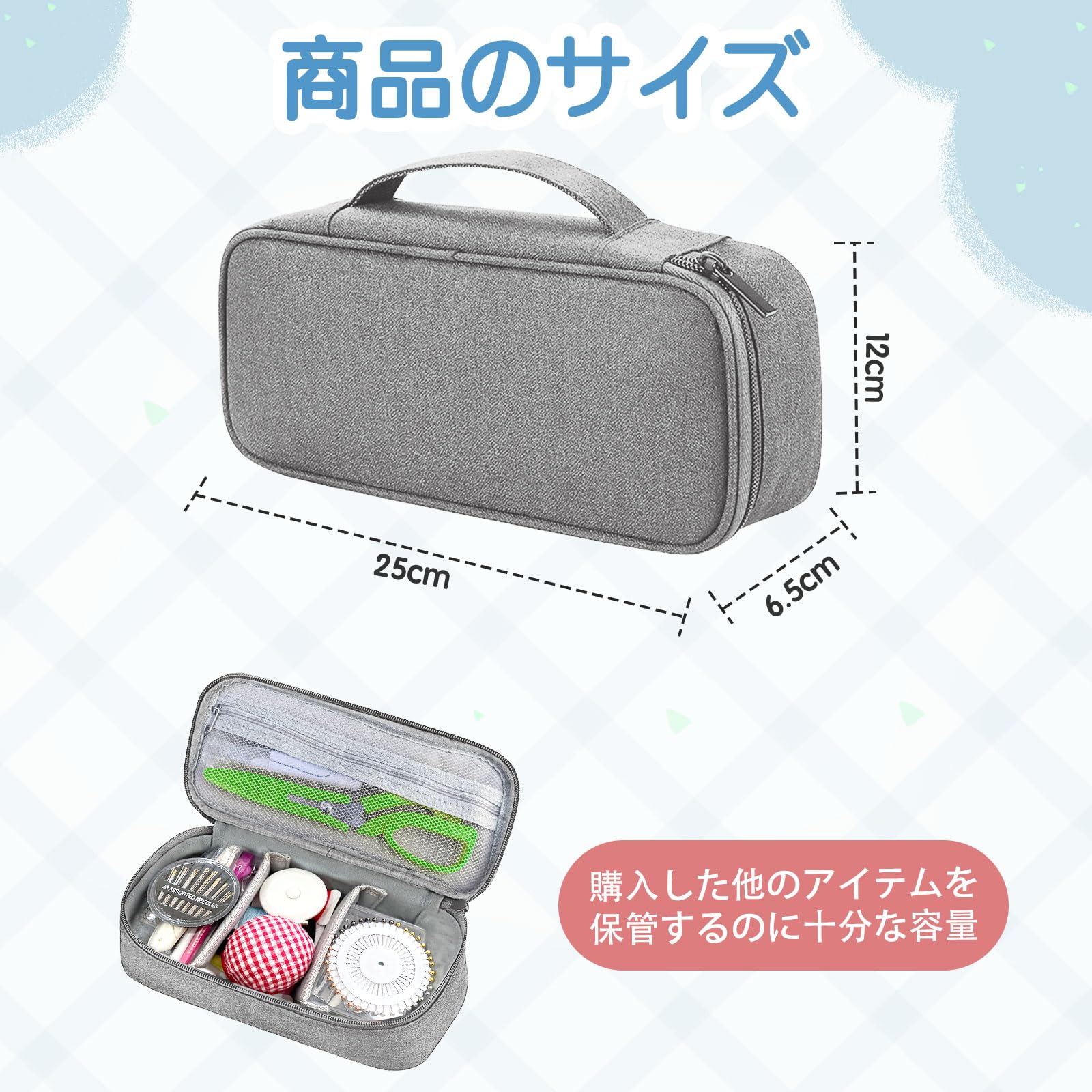 ?【こだわりのポイント!】?飽きのこないシンプルなデザインのバッグ。?クリアケースと仕切り付きで整理整頓しやすい。?裁縫道具 小学生 女の子 男の子 大人トラベルポーチやガジェットポーチとしても使えます。