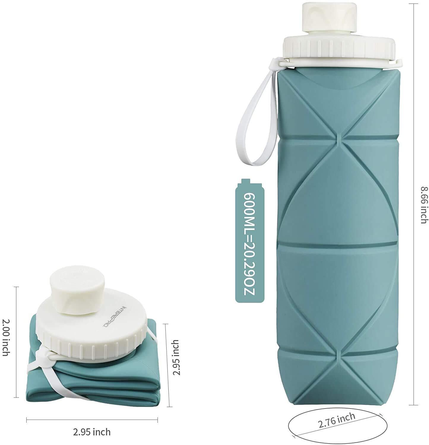 【人気】折りたたみ ボトル シリコン折りたたみ式ウォーターボトル 携帯用スポーツ水筒 登山大容量防水/耐熱屋外環境保護ウォーターボトル 自転車登山用漏れ防止 BPAフリー FDA認証食品級シリコン製 折り紙 子供 大人 大容量600ml 超軽量 洗いやすい 軽量 無毒無臭 耐冷耐熱 (ターコイズブルー) | GIGATERA