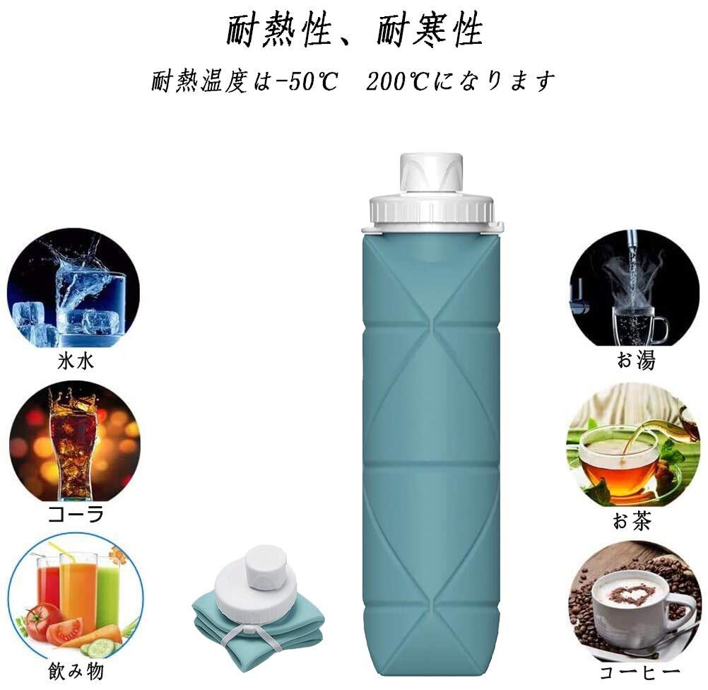 折りたたみ ボトル シリコン折りたたみ式ウォーターボトル 携帯用スポーツ水筒 登山大容量防水/耐熱屋外環境保護ウォーターボトル 自転車登山用漏れ防止 BPAフリー FDA認証食品級シリコン製 折り紙 子供 大人 大容量600ml 超軽量 洗いやすい 軽量 無毒無臭 耐冷耐熱 (ターコイズブルー)