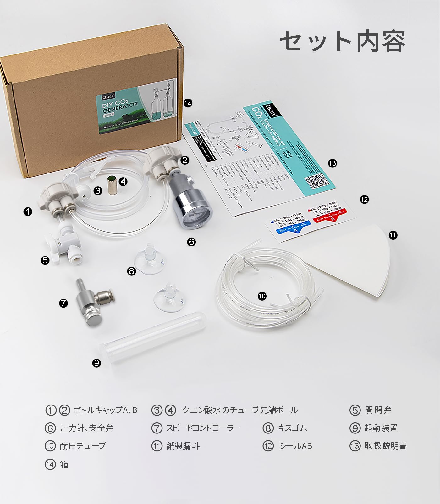 クレシーG210 水草用DIY co2 ジェネレーター 化学式co2 水草用化学式co2セット co2 化学式 簡易モデル ペトボン