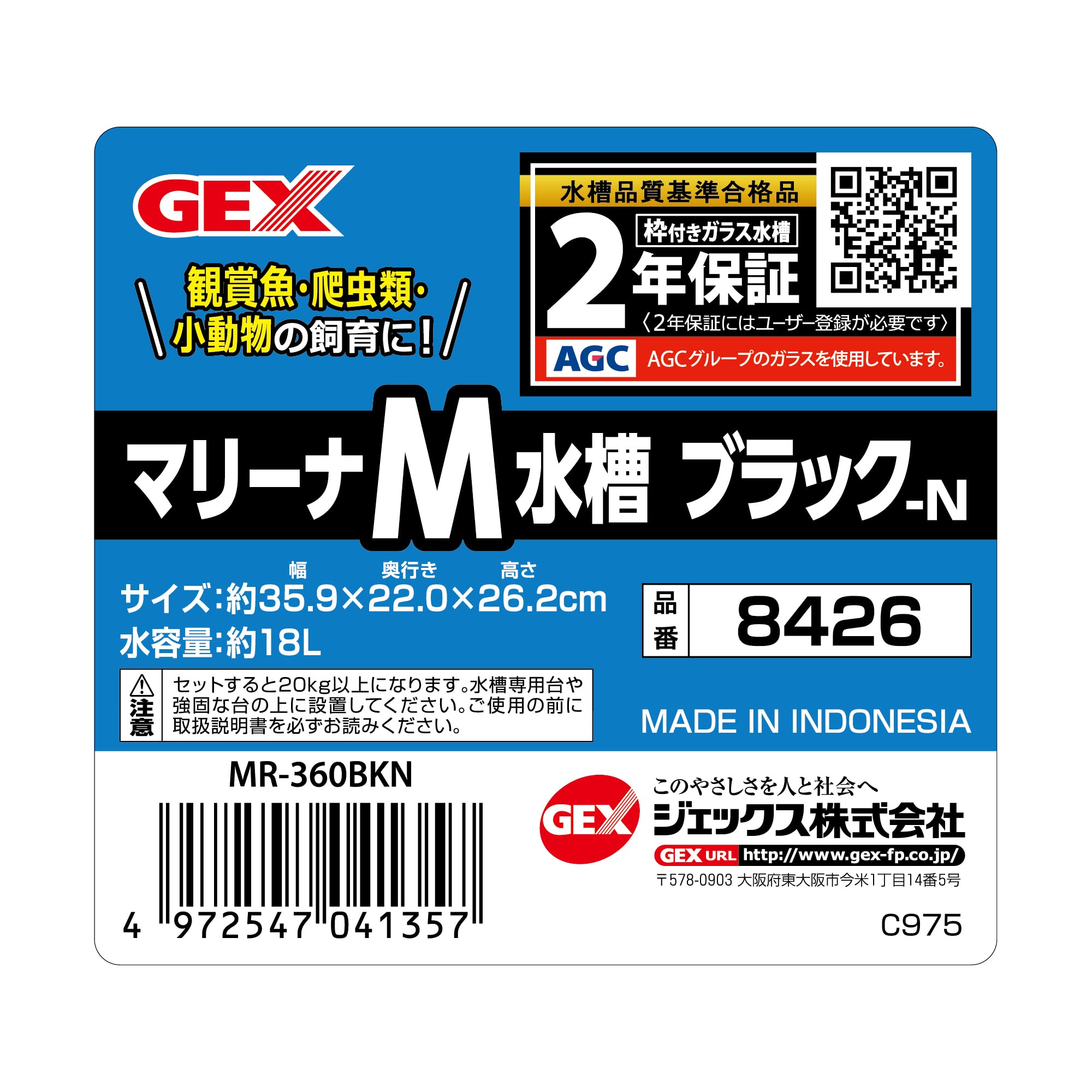 【製品仕様】水槽サイズ:約幅35.9×奥行22×高さ26.2cm、水容量:約18L、セット内容:ガラス水槽、スチロールフタ