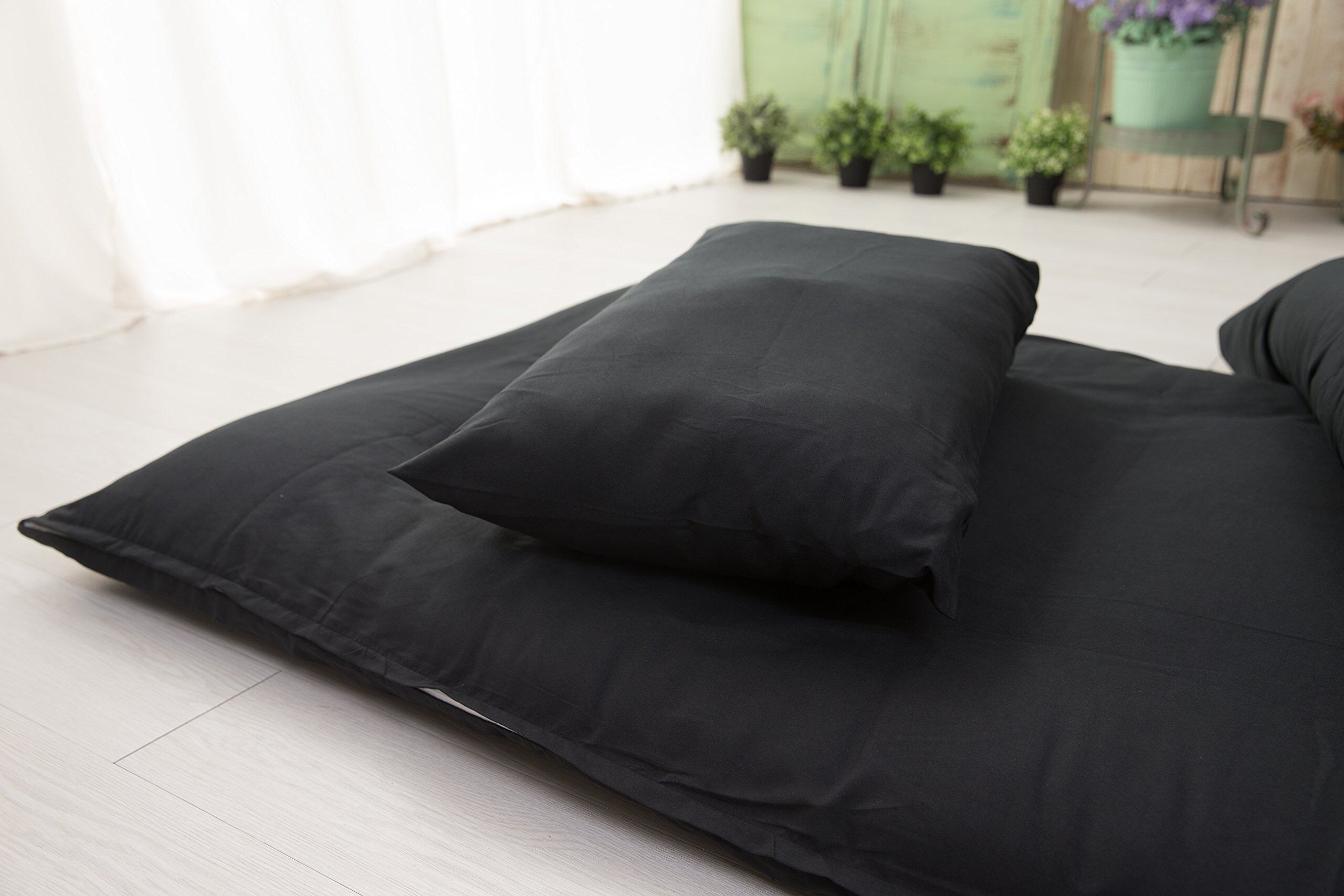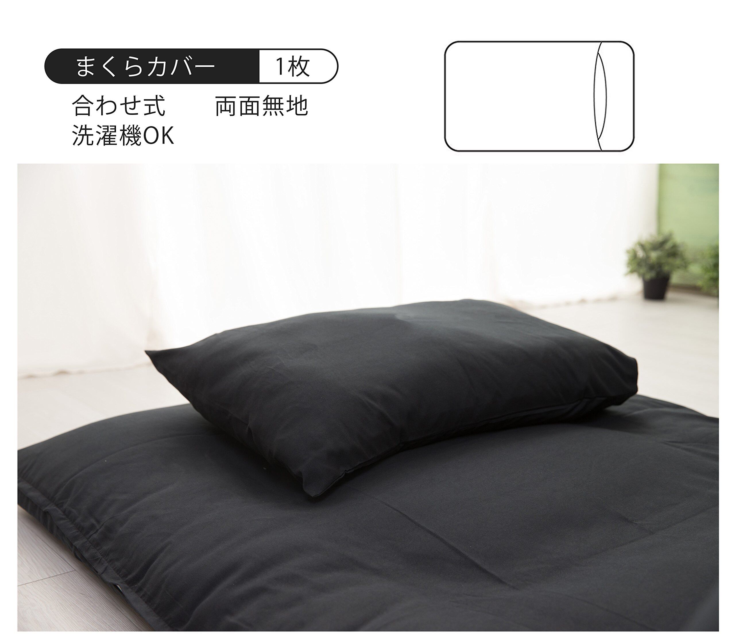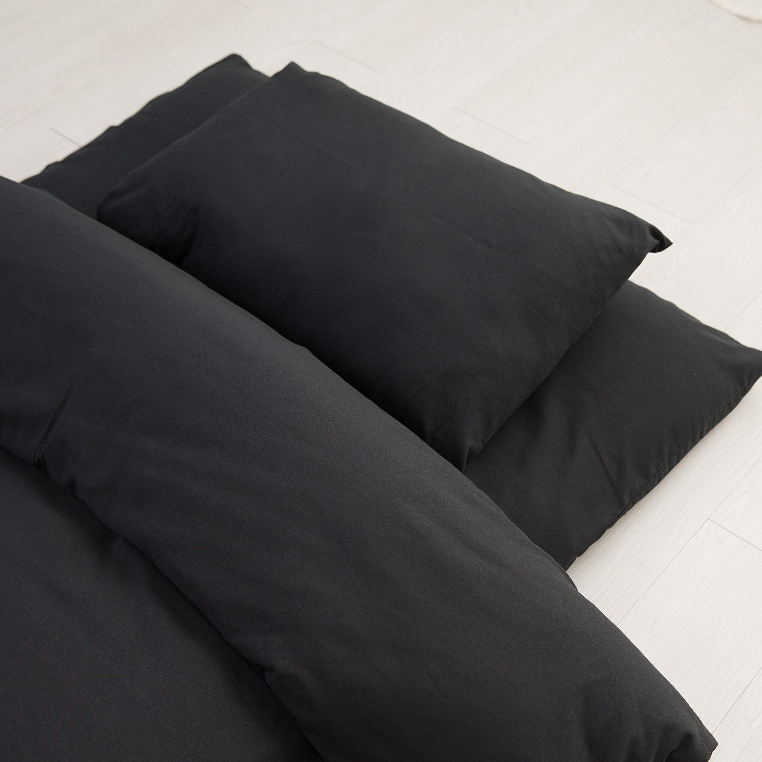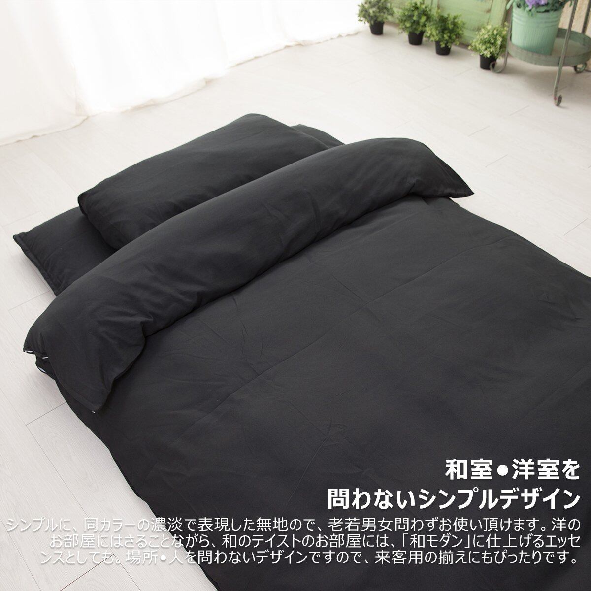 和式 布団カバー シングル 3点セット 綿混 無地 寝具カバー3点セット 掛け布団カバー 敷き布団カバー 枕カバー 洗い替え 防ダニ(ブラック)