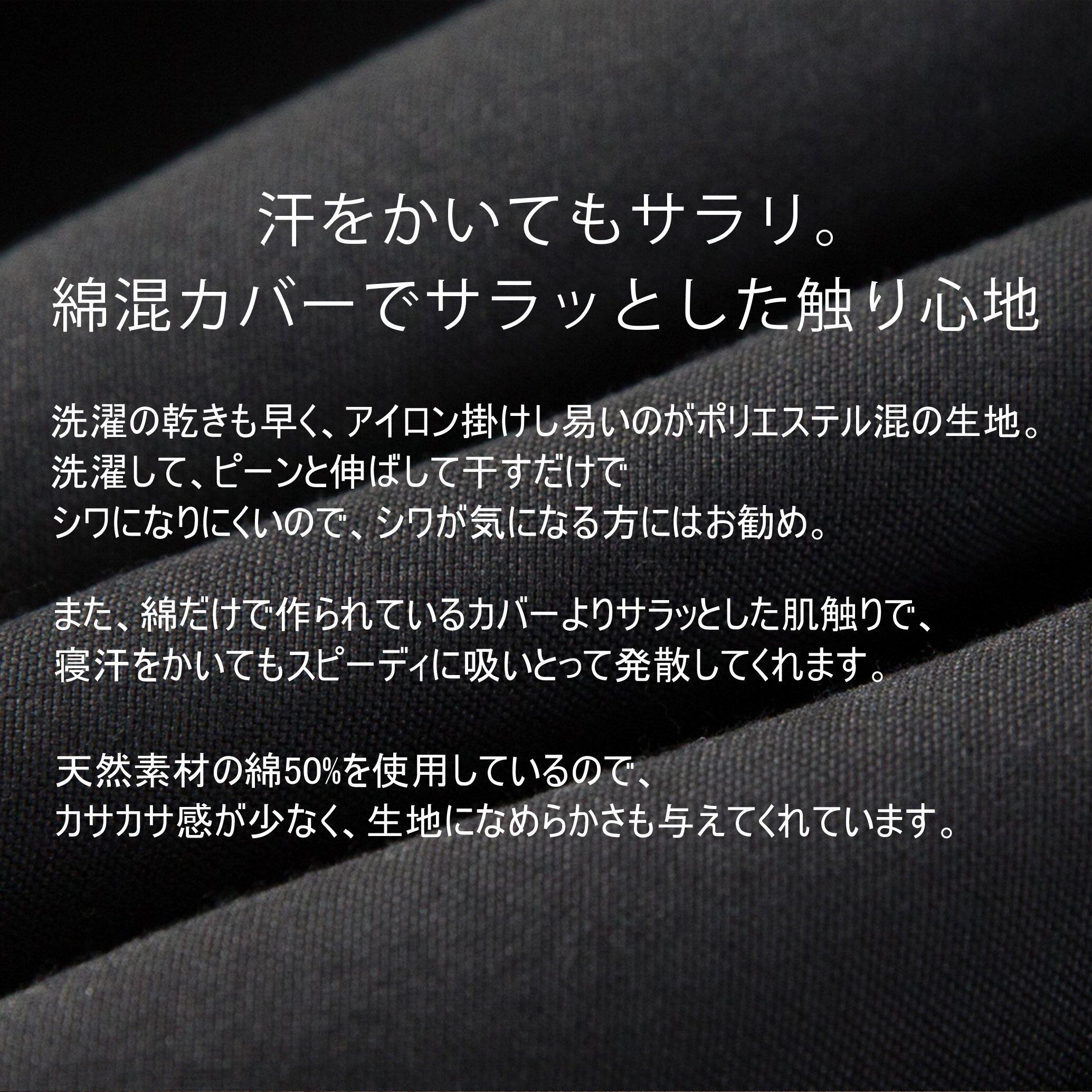 【綿混生地・快適】: 綿50%とポリエステル50%の混紡系なので、速乾性に優れ、乾きが早いからお洗濯も楽々!お洗濯の後シワが付きにくいから手入れも簡単!だからいつでもカバーは清潔に毎日快適に眠れます。きめ細やかな「ピーチスキン加工」なので、すごく柔らかくて肌触りがよいです。無臭無毒で、子供でも楽に使用できます。